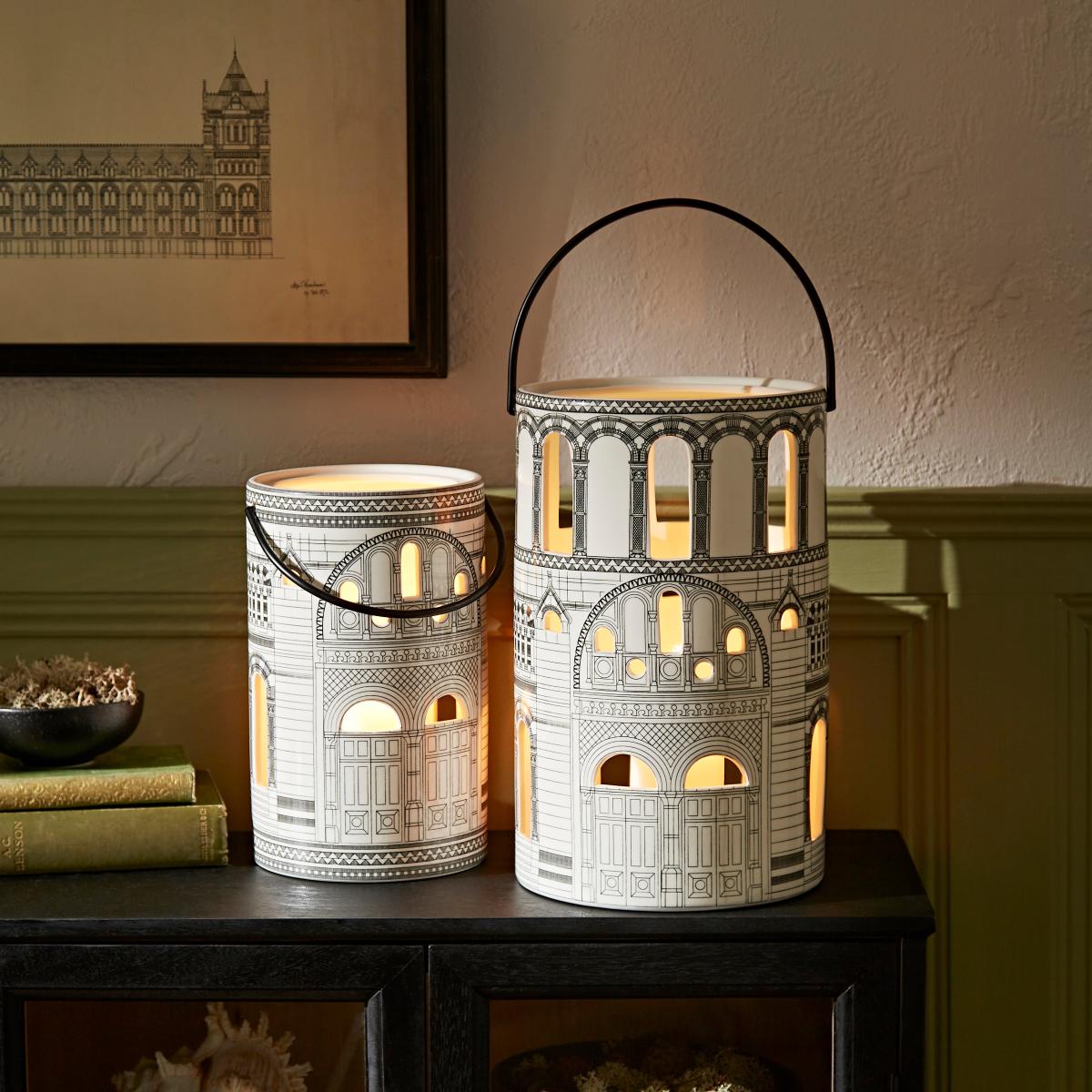 In Collaboration with the Natural History Museum The Cathedral to Nature Lantern is perfect for adding ambience and interest to any room in your home. Beautifully crafted from ceramic with a glazed finish. This lantern features a cut out window design that casts a lovely light when the candle is lit. Complete with a metal carry handle for easy hanging or displaying on a table top. This lantern can also be paired with the large Cathedral to Nature Lantern to create a beautiful light display. Natural History Museum x Dunelm The Cathedral to Nature Small Lantern is part of the Signature collection. This very special collaboration has been influenced by the Natural History Museum’s incredible building. Taking inspiration from the Museum’s unique architectural details and unmistakable Victorian décor, our contemporary collection makes it possible to bring a piece of natural history into your home. © The Trustees of the Natural History Museum, London 2022. All Rights Reserved.