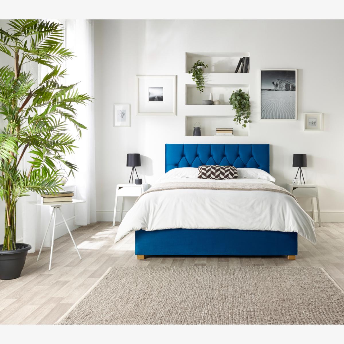 Stylish ottoman bed manufactured in the UK and upholstered in a beautiful, brushed velvet fabric. The hand upholstered headboard features deep padding and a gorgeous, buttoned design. Choose from emerald, blush, light silver, steel, and navy fabric finishes. The design is finished off with stylish solid hard wood feet. The ottoman bed provides vast storage that can be easily accessed with gas lift pistons, once the mechanism is open it will hold in place allowing hands free access to the large storage area. The bed comes completely with a dust sheet to keep the storage are clean, please note the storage area is not a boarded base. The bed features quality spring slats for added comfort and support. The mechanism is capable of lifting mattress with a weight of up to 60kg. The bed is supplied flat pack, assembly takes 1-2 hours and is easier with 2 people. The bed meets UK safety standards and has also passed non-mandatory structural testing for peace of mind.