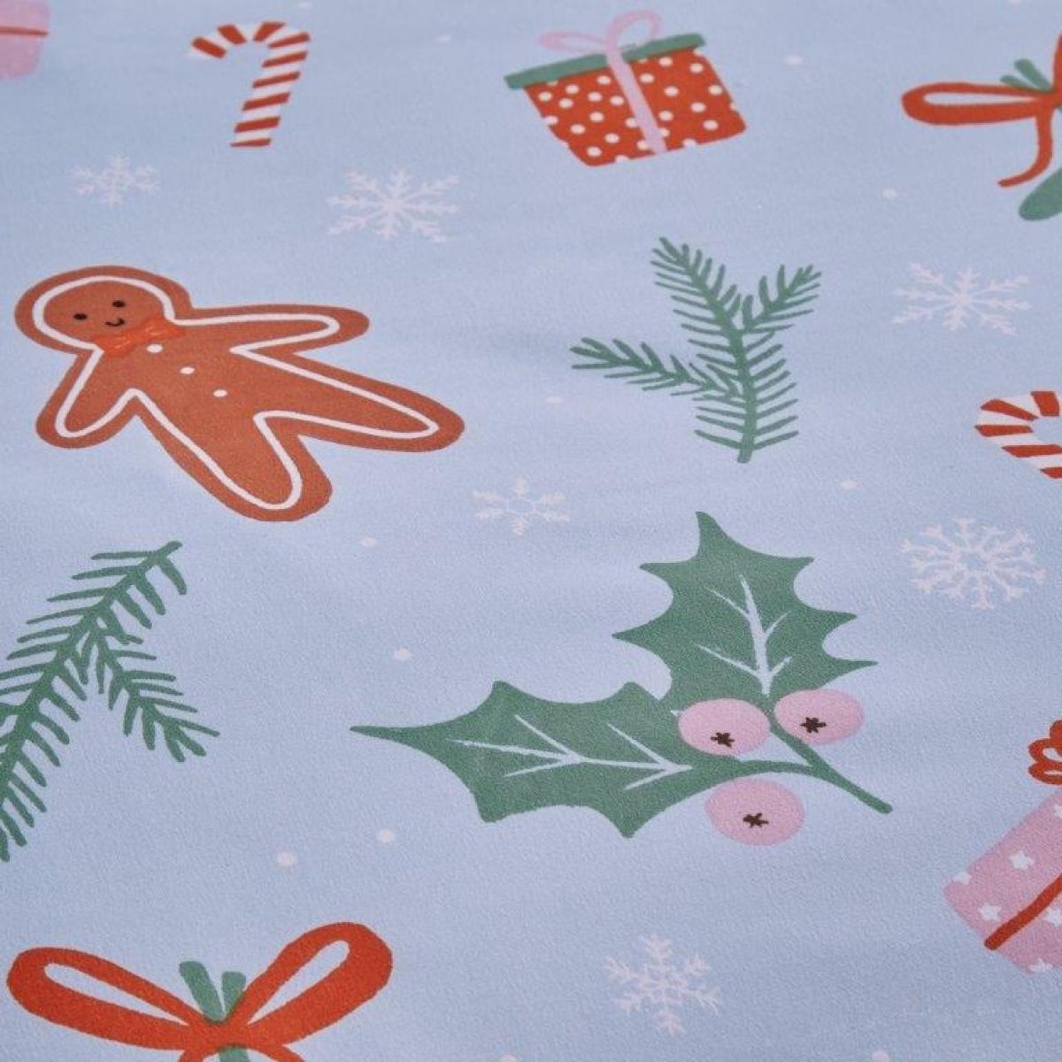 Bring the magic of Christmas into your bedroom with the Catherine Lansfield Festive Duvet Set. Adorned with mistletoe, candy canes, presents, gingerbread men, and charming Christmas puddings, it’s the perfect way to add holiday cheer to your space. The fully reversible design offers two options—icy blue or pure snowy white—allowing you to create your own winter wonderland. Made from easy-care, quick-drying microfibre, this set is a time-saving, hassle-free option for the busy holiday season. Perfect for cozying up in festive style! Please note: Cushions are not included and can be purchased separately. 100% Polyester Made From: Super soft and lightweight microfibre for a sound sleep. Fully Reversible: For two stylish looks in one. Button Fastening: To keep your duvet securely in place. Contents - Duvet Cover & Pillowcase/s (single x1, other sizes x2) Care Instructions Wash Before Use. Machine Wash at 40 Degrees. Tumble Dry Safe. Dimensions Single 140 x 200cm Double 200 x 200cm King 225 x 200cm All screens vary in colour reproduction and whilst every effort has been made to display the colour as accurately as possible it is for guidance only