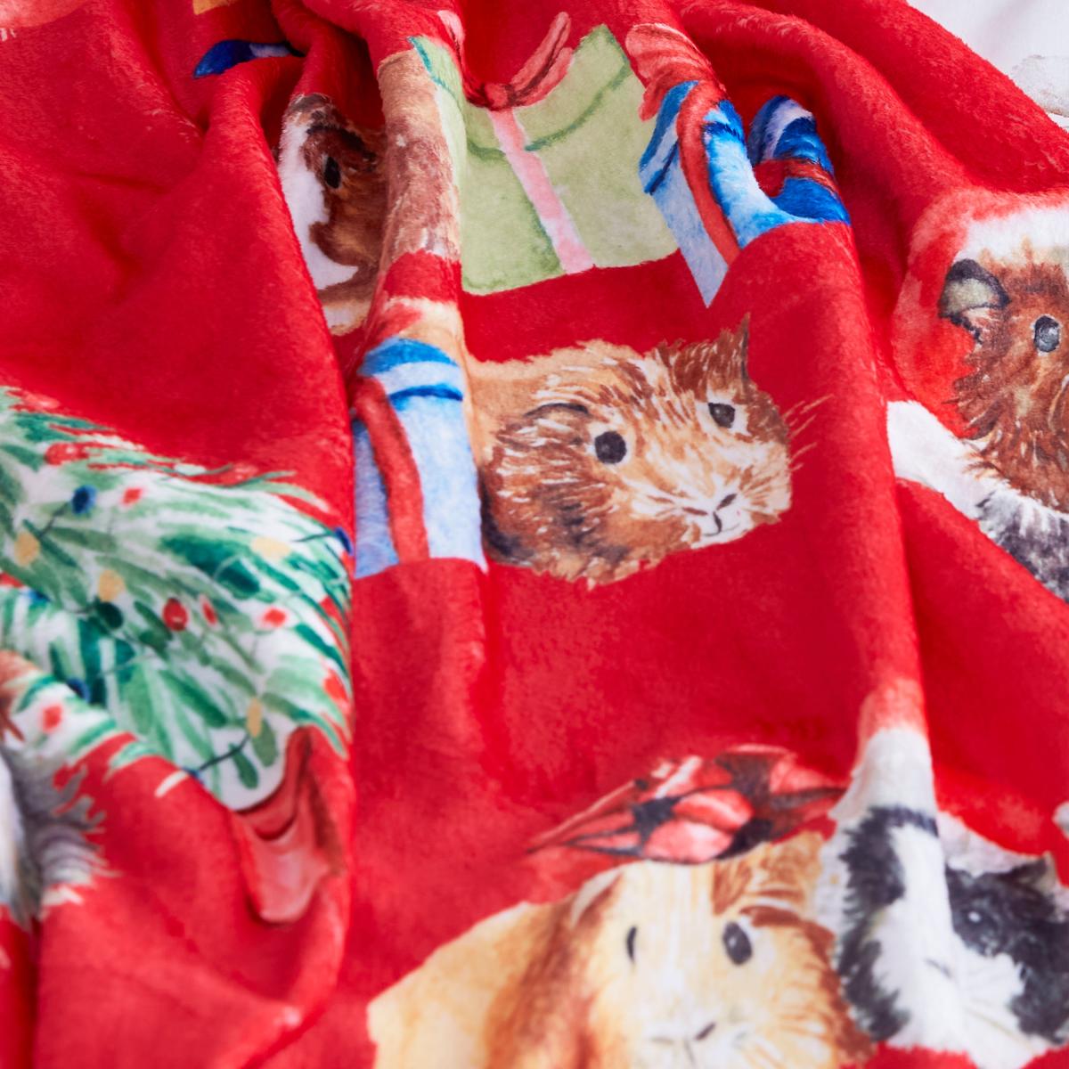 Catherine Lansfield Christmas Guinea Pigs Fleece Throw 130cm x 170cm Red
