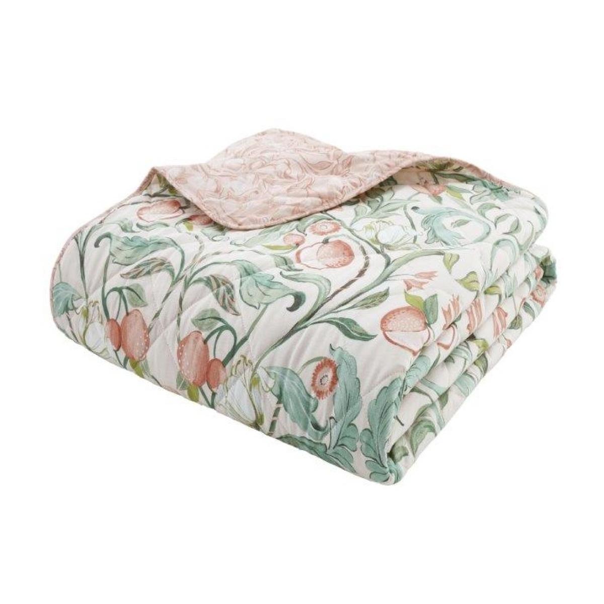Catherine Lansfield Bedroom Clarence Floral 220x230cm Quilted Bedspread Natural / Green. Bring timeless styling to your bedroom with this fully reversible arts and crafts leaves and floral bed throw set on a contemporary neutral base. Created from easy-care and durable polycotton fabric perfect for everyday use. Features: Quilted, reversible, light weight, embellished detailing. 52% Polyester 48% Cotton Suitable for fully covering single, double, king and super king size beds Ethically sourced overseas and made to quality and human-ecological safety standards, in accordance with MADE IN GREEN by OEKO-TEX. Better Cotton- By choosing our cotton product, you're supporting Catherine Lansfield's investment in Better Cotton's mission. Better Cotton is sourced via a chain of custody model called mass balance, this means that this product may not contain Better Cotton, however Better Cotton Farmers benefit from the demand for Better Cotton in equivalent volumes to those used. Care Instructions: Wash Before Use. Machine Wash at 40°C Tumble Dry Safe. Please note All screens vary in colour reproduction and whilst every effort has been made to display the colour as accurately as possible it is for guidance only.