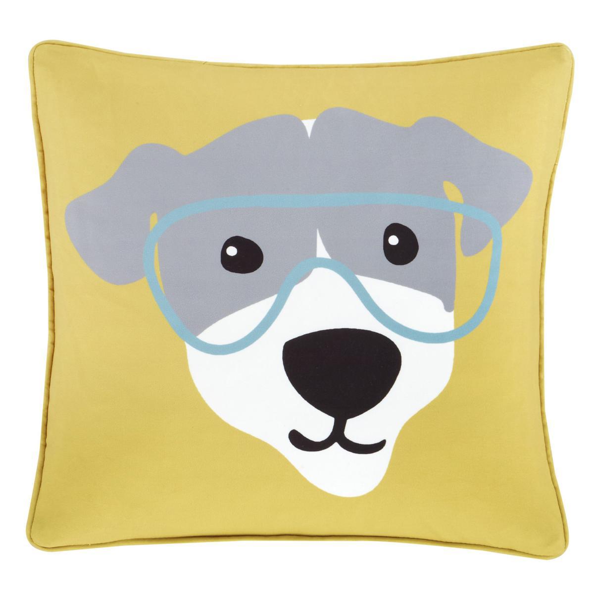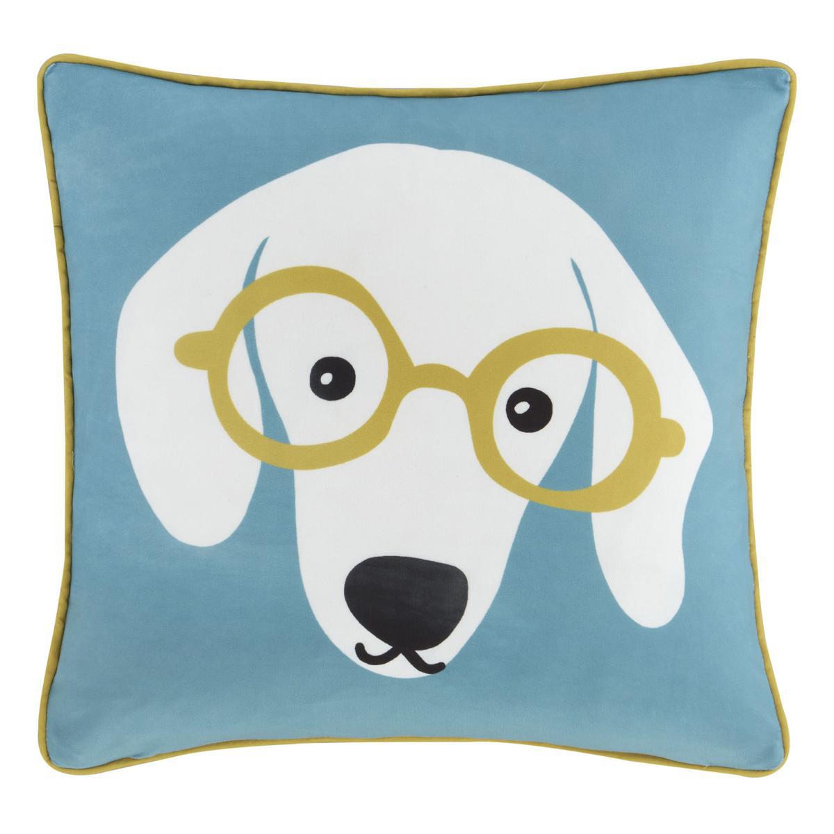 Ready to make you smile this witty cushion features cool quirky dogs sporting sartorial eyewear, with a fully reversible with one blue teal side and the other yellow ochre. Catherine Lansfield is renowned for style and quality - designed and developed in Great Britain. This cushion is ethically sourced overseas and made to strict quality and human-ecological safety standards.