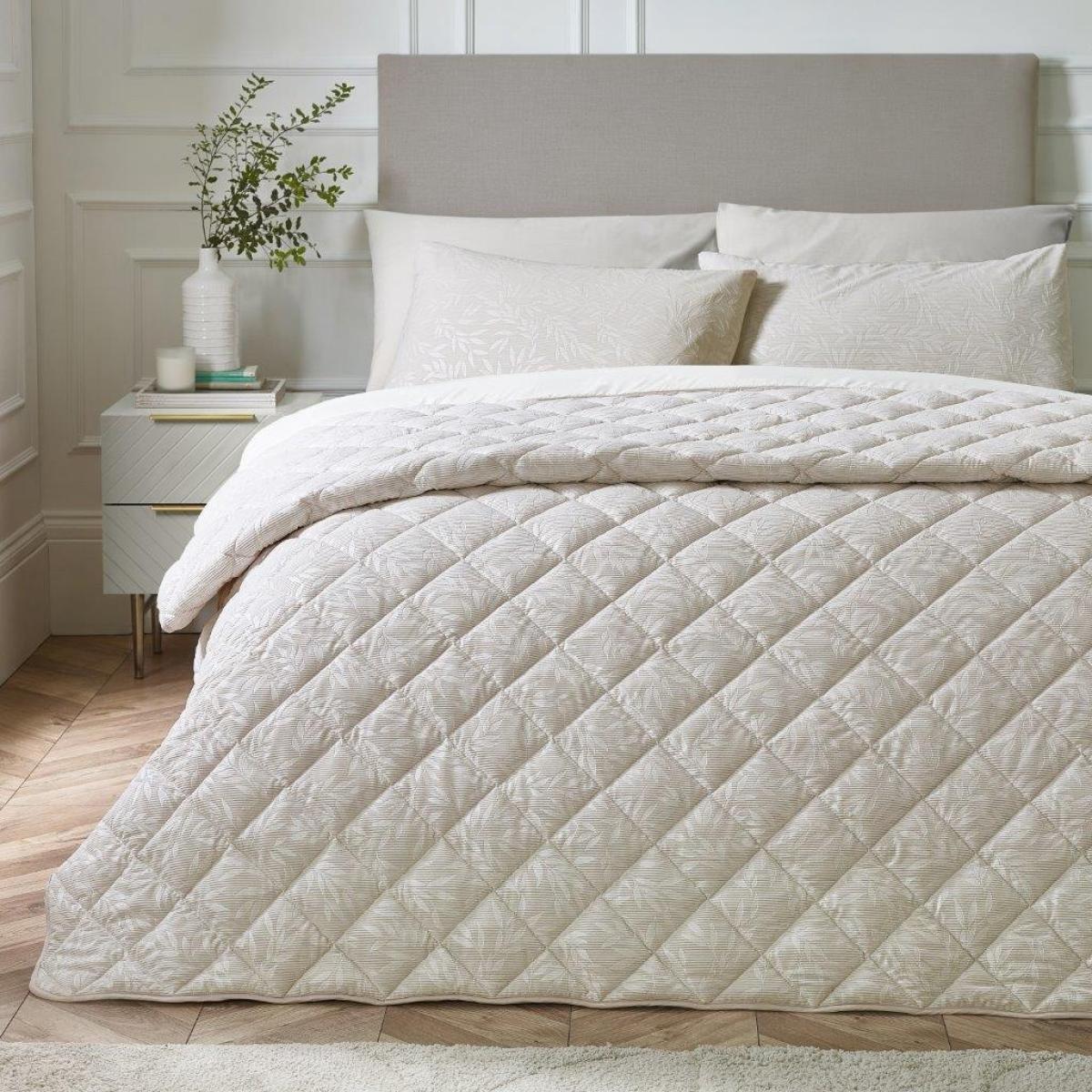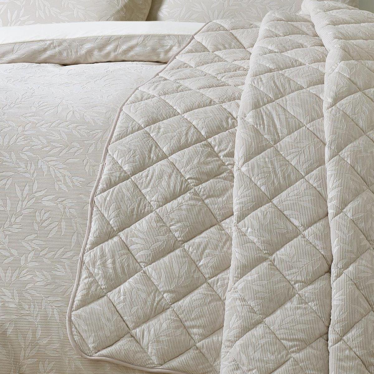 Elevate your bedroom with the Catherine Lansfield Corded Leaves Embossed Leaf bedspread, where timeless elegance meets luxurious texture. Crafted from beautifully soft-to-touch fabric, this bedspread features intricate corded embossing of delicate leaves, adding depth, sophistication, and a refined finish to any space. Its textured design creates an opulent touch, making it a statement piece for your bedroom décor. Designed and developed in Great Britain, Catherine Lansfield is renowned for style and quality. For peace of mind, this bedspread is also OEKO-TEX® STANDARD 100 certified, ensuring it meets strict human-ecological safety standards. Features: 100% Polyester Size: 240x260cm Quilted: For an extra layer of padding and insulation. Large Size: Suitable for fully covering single, double and king size beds. Corded Embossed Detailing:Offers a rich and textured feel. Care Instructions: Wash before use Wash at 40°C Tumble dry safe Please note, all screens vary in colour reproduction and whilst every effort has been made to display the colour as accurately as possible it is for guidance only.