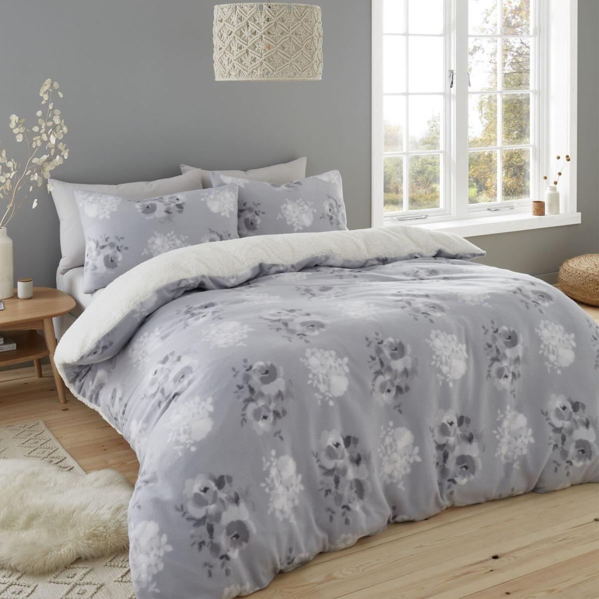 Catherine Lansfield Cosy Painterly Floral Duvet Cover and Pillowcase Set Grey
