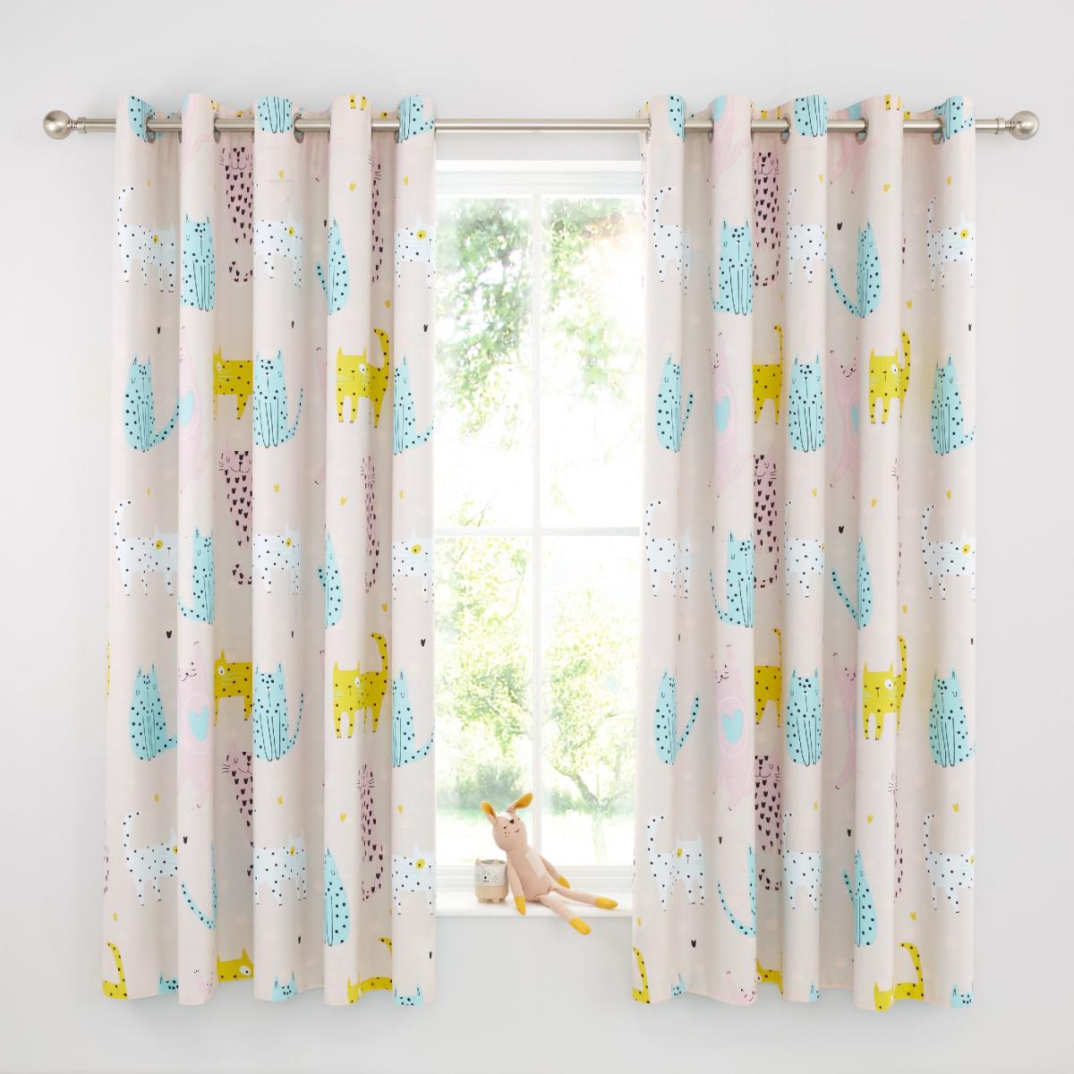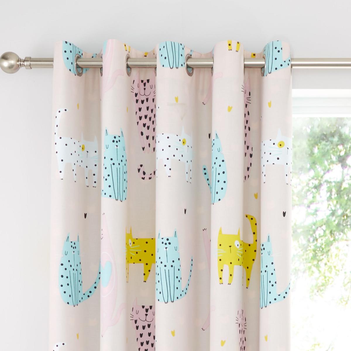 Catherine Lansfield Cute Cats Pink Eyelet Curtains Pink/Blue/Yellow