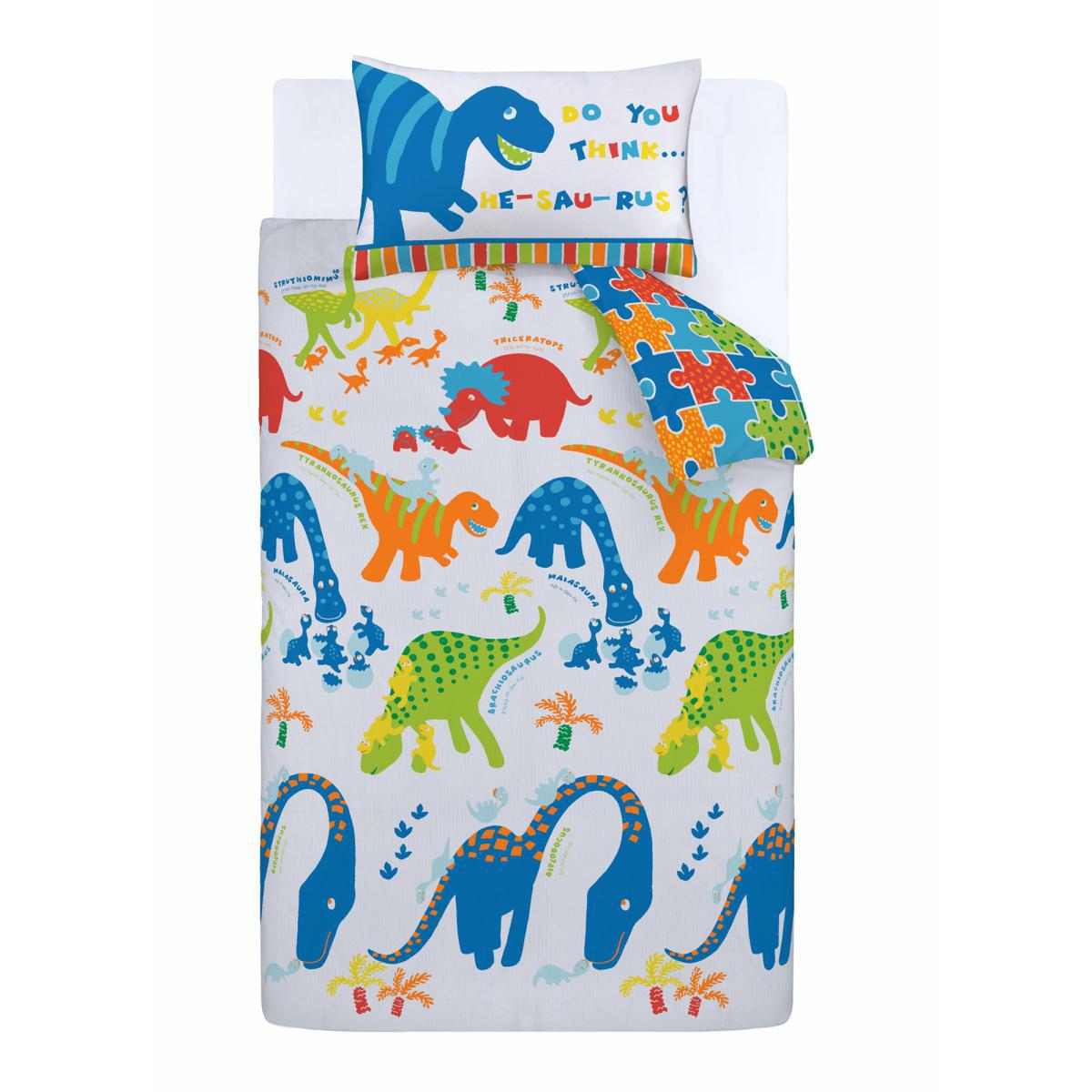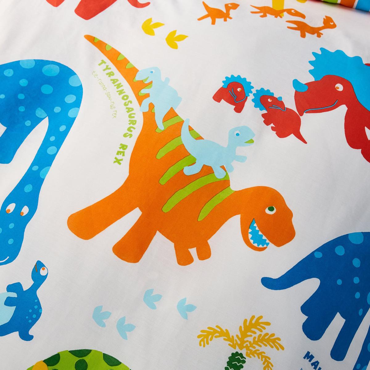 Catherine Lansfield Dino-Saw Easy Care Single Duvet Cover and Pillowcase Set Blue, Red and White