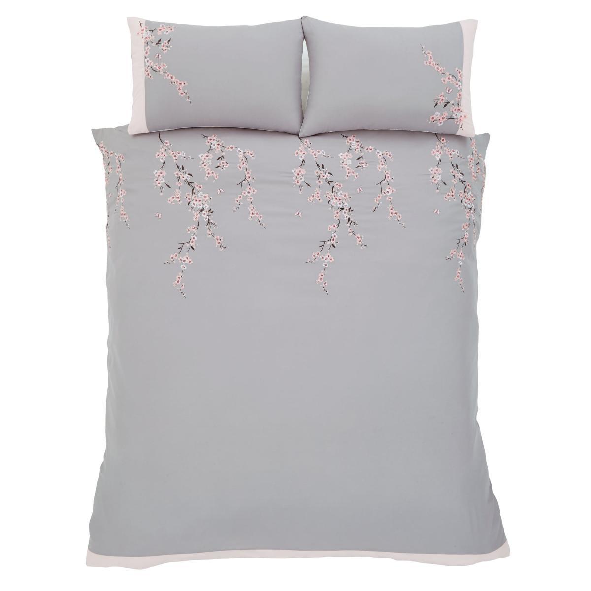 Catherine Lansfield Embroidered Blossom Grey Duvet Cover and Pillowcase Set Grey