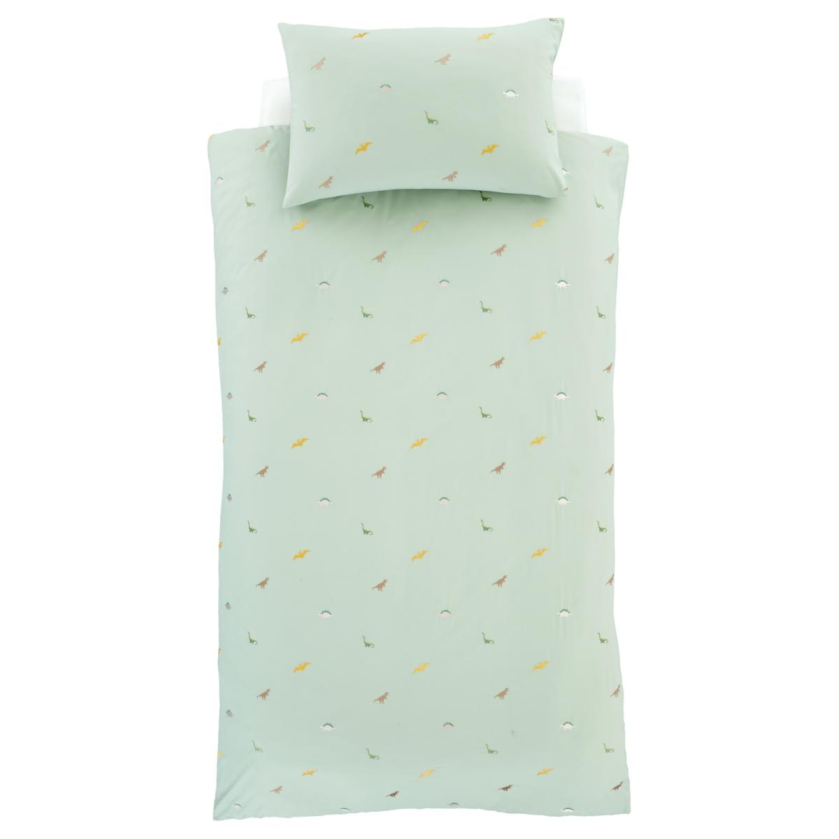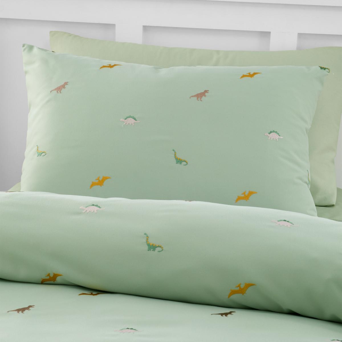 Catherine Lansfield Embroidered Dinosaur Duvet Cover Set - Single In Green