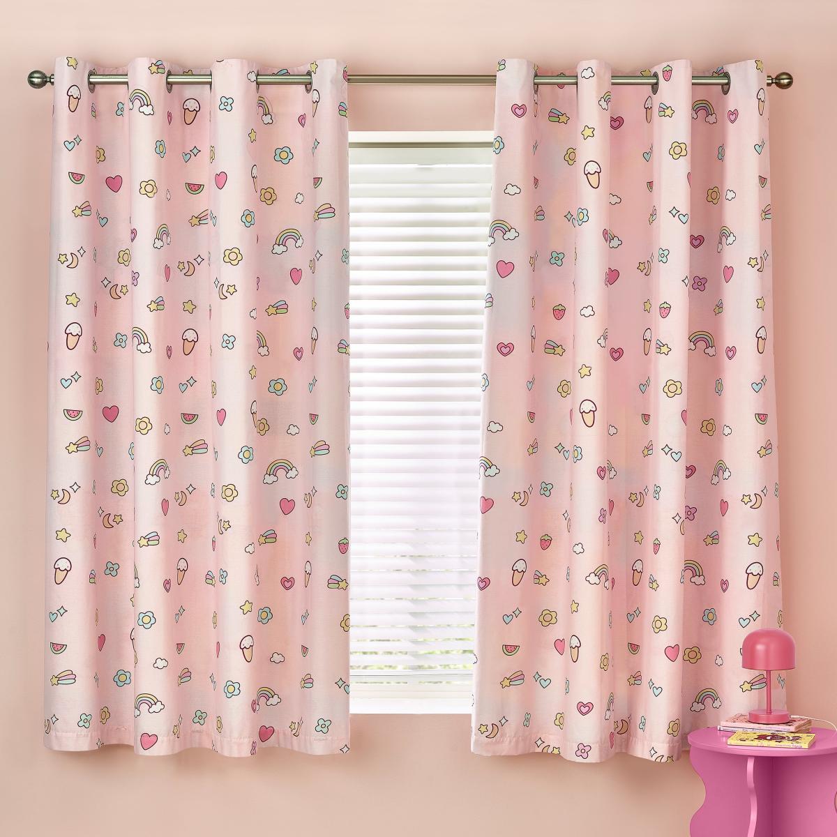 * Catherine Lansfield branded curtains * Soft and durable, polycotton composition * Dreamy design featuring colourful motifs * Blackout lined * Eyelet header * Corresponding items available Bring a dreamy, magical atmosphere to your child’s room with the Forever Together Blackout Curtains. Featuring adorable kittens, playful bunnies, and whimsical rainbows, these curtains are perfect for creating a soft, pastel-inspired haven. The easy-care polycotton fabric ensures both durability and comfort, while the blackout lining helps to keep the room dark and cosy for a good night’s sleep. Designed with a practical eyelet header, these curtains are easy to hang and adjust. For a coordinated look, match with the Forever Together bedding collection.