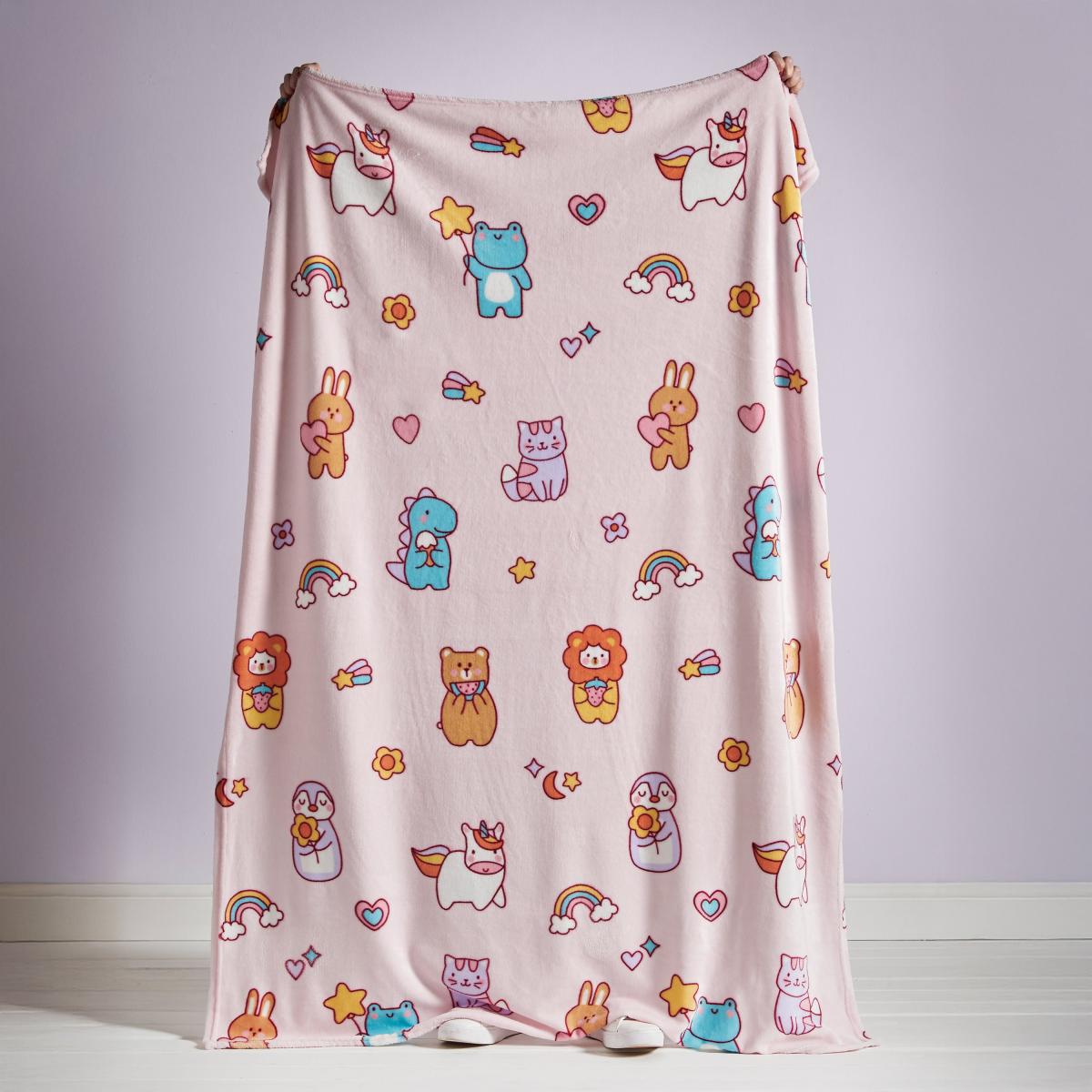 I love this throw for its playful and cosy vibe, making it perfect for adding a touch of fun to a child's bedroom or a relaxed living space. Its soft pastel tones and whimsical unicorn and animal motifs make it versatile for both contemporary and more playful decor styles. Styling tip: drape it casually over a sofa or bed for a welcoming, lived-in look, or fold it neatly at the foot of a bed to add a cosy layer without overwhelming the space. It works well with neutral tones for a subtle pop of colour or in a pastel palette for a sweet, coordinated look. Its size makes it practical for snuggling or light layering during cooler days.