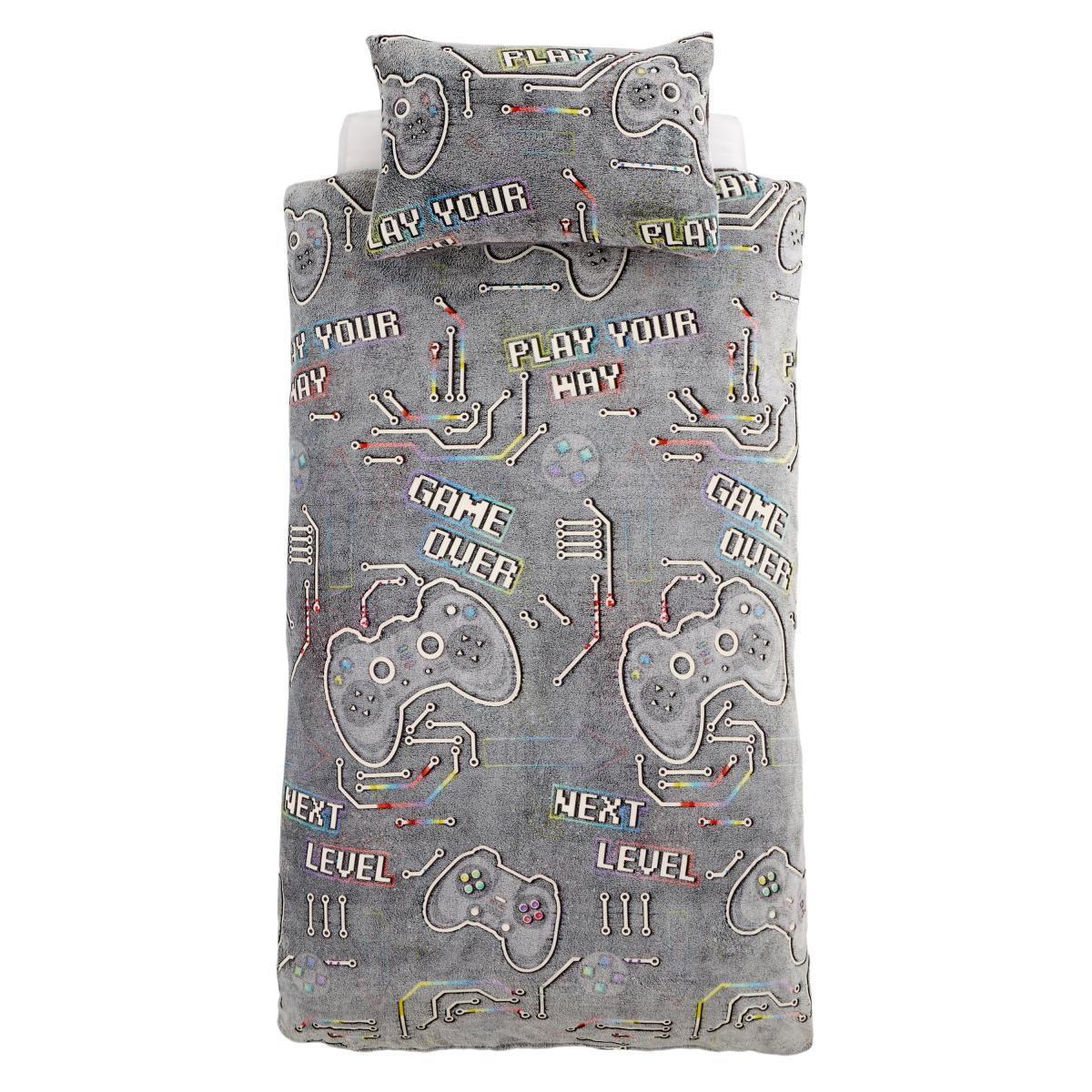 Catherine Lansfield Game Over Fleece Duvet Cover and Pillowcase Set Black