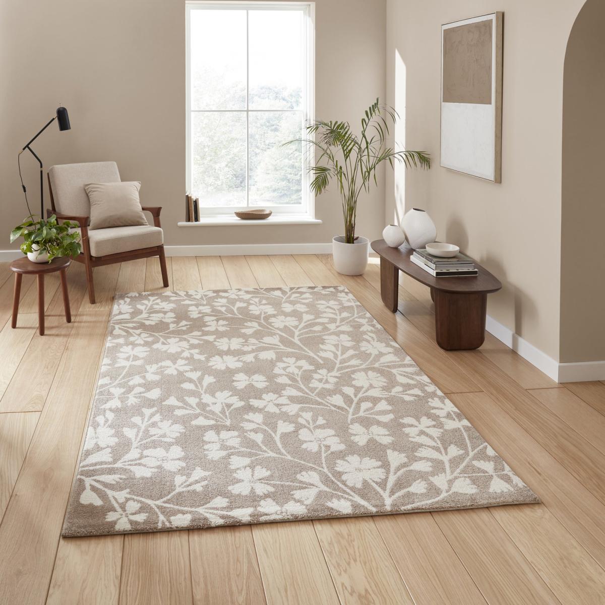 I love this rug because of its versatile floral design and neutral colour palette, making it a great way to add warmth and pattern without overpowering a space. It works well in both contemporary and more traditional interiors, especially if you’re aiming for a cosy, inviting feel. Practical styling tips include layering it over a larger, neutral carpet if you want to define a seating area or using it underneath a simple coffee table to anchor your furniture. The soft, subtle design lends itself to living rooms or bedrooms where a touch of softness and pattern is desired, while its durable construction makes it suitable for everyday use.