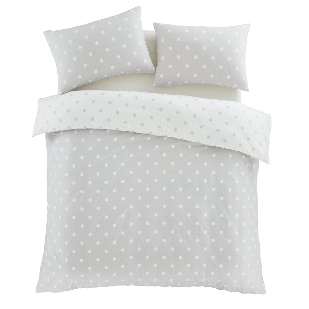 Catherine Lansfield Grey Polka Dot 100% Brushed Cotton Duvet Cover and Pillowcase Set Grey