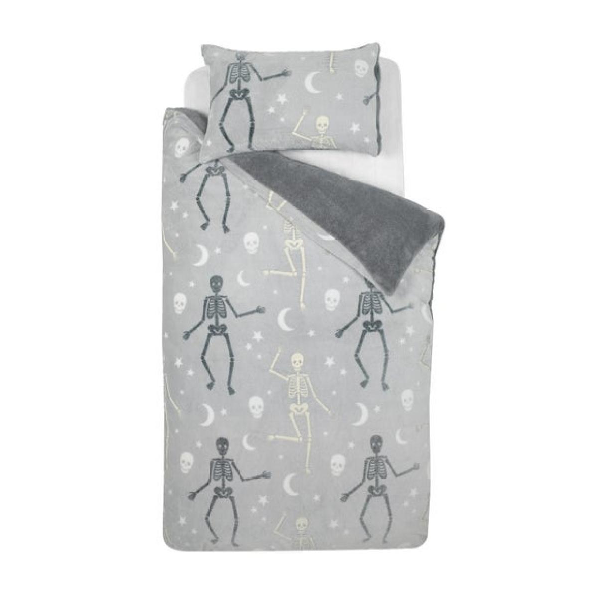 Catherine Lansfield Halloween Skeleton Fleece Duvet and Pillowcase Set
