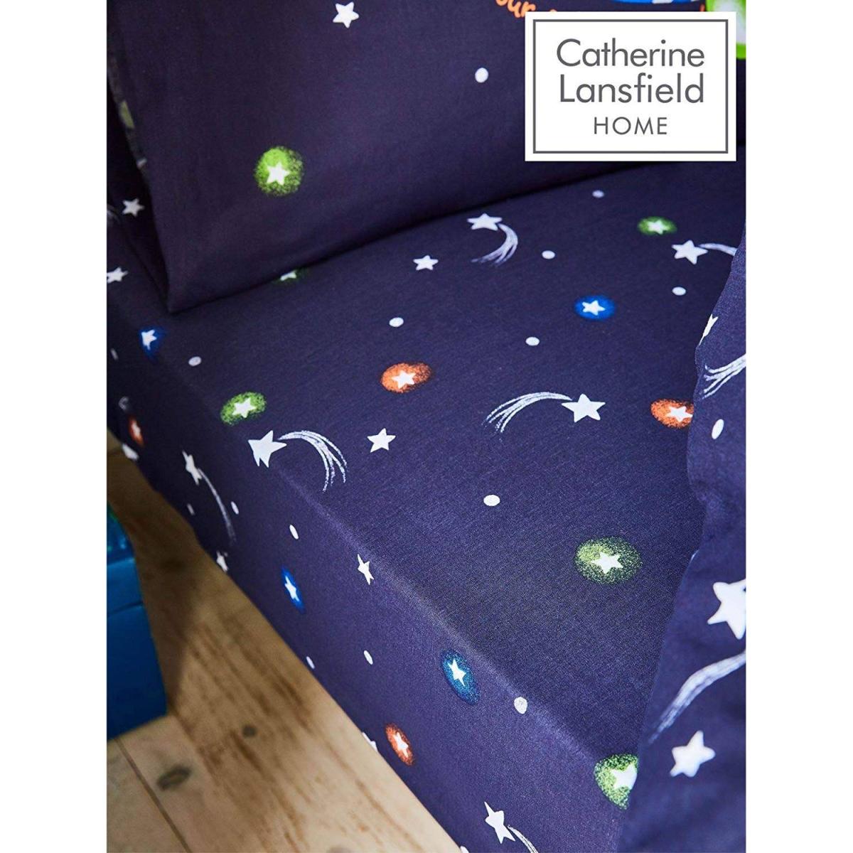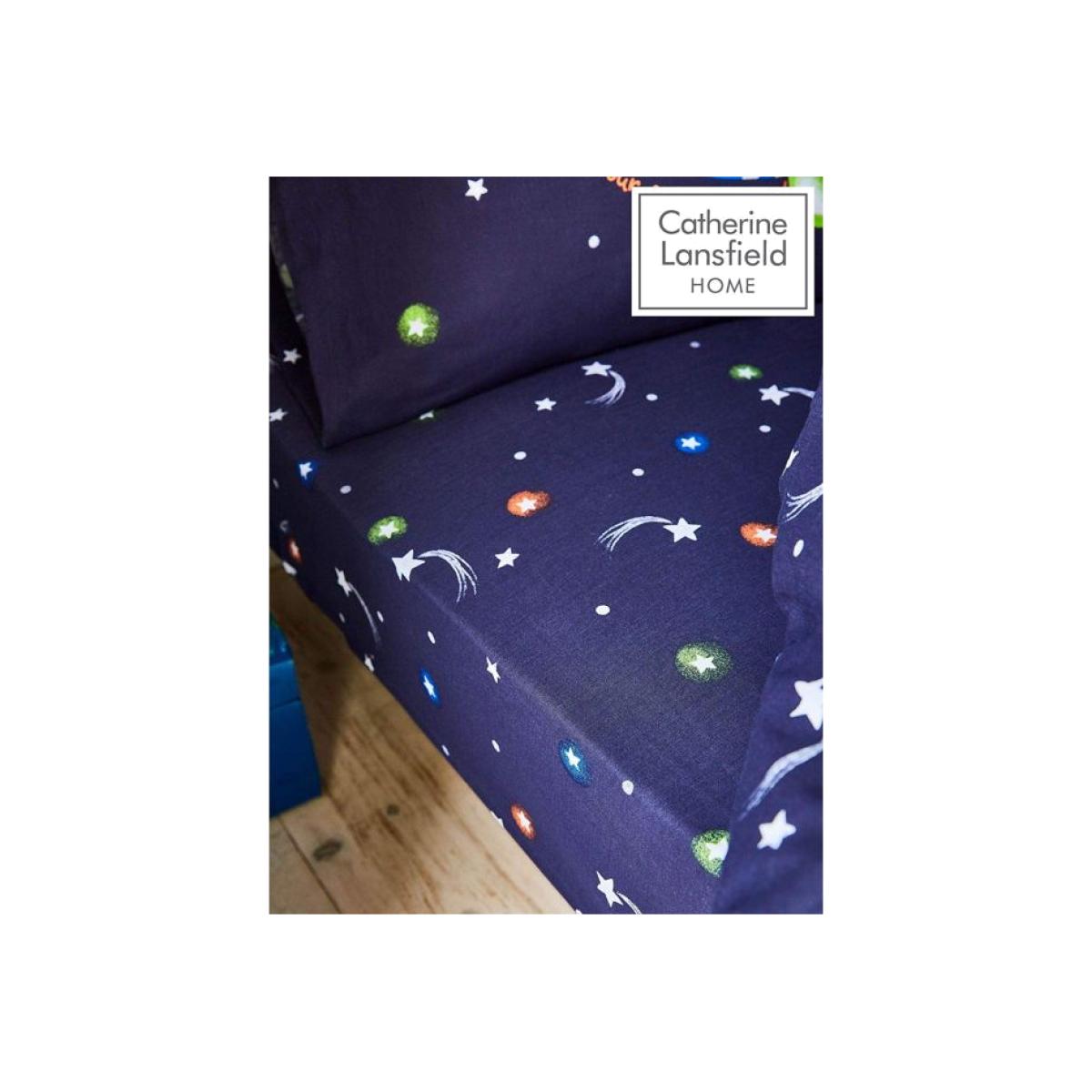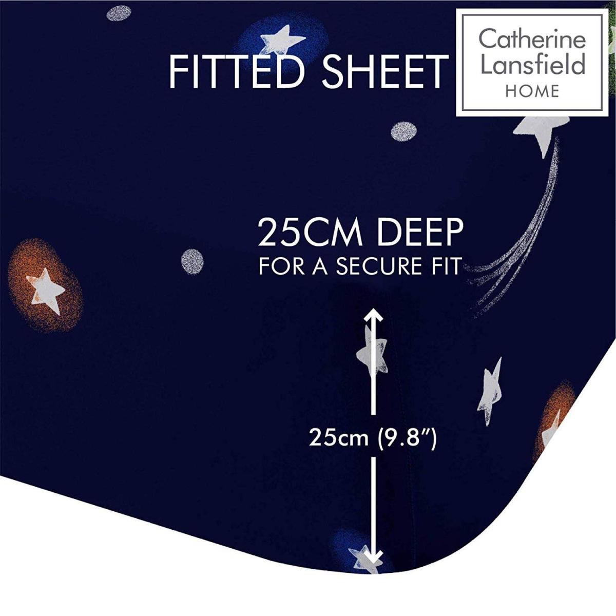 Perfectly coordinating with the matching Happy Space duvet cover set, available separately, this single fitted sheet features lots of shooting stars, faraway galaxies and multi-coloured planets. And because the soft-touch fabric is machine washable and needs minimal ironing, it's perfect for busy family homes! Material Content: 52% Polyester 48% Cotton Washing Instructions: Machine Washable This pack contains one single fitted sheet. Dimensions: 90 x 190cm + 25cm depth