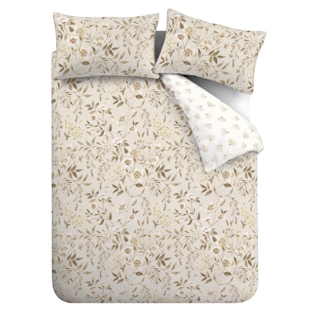 Embrace the beauty of spring with the Catherine Lansfield Isadora Floral Duvet Set in Natural. Featuring a soft watercolour floral design in delicate hues, this set brings a refreshing, tranquil atmosphere to your bedroom. Fully reversible, with a complementary ditsy floral pattern on a soothing white backdrop, it offers versatility for a fresh look. Crafted from a blend of easy-care recycled polyester and soft cotton, this duvet set is designed for everyday comfort and durability. Fully Reversible: For two stylish looks in one. Button Duvet Fastening: To keep your duvet securely in place. Envelope Pillowcase Closure: Providing a secure and snug fit for your pillow. 52% Polyester 48% Cotton 132 Thread Count Includes Single Duvet Includes Single Pillowcase Double, King and Superking Size Duvet Includes Pair of Pillowcases Care Instructions Wash Before Use. Machine Wash at 40 Degrees. Tumble Dry Safe. Please note All screens vary in colour reproduction and whilst every effort has been made to display the colour as accurately as possible it is for guidance only.