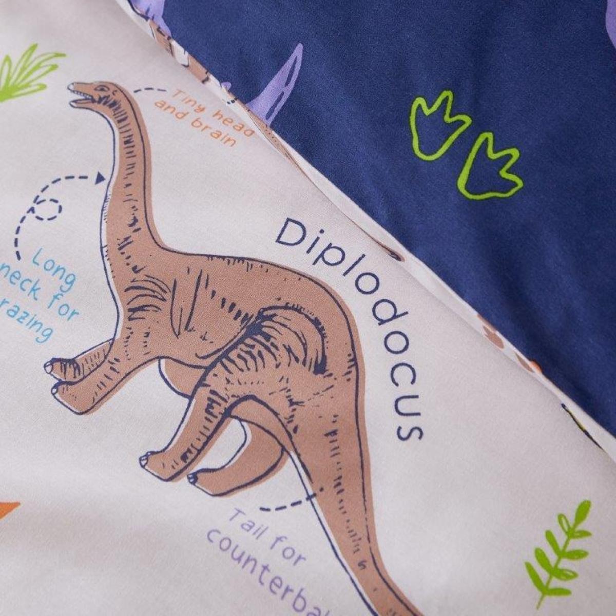 Bring your child's love of dinosaurs to life with this playful dinosaur bedlinen. Featuring cute and colourful illustrations of their favourite dinosaurs on a natural earthy base, this bedding is perfect for sparking your child's imagination and sense of wonder. Fully reversible, with a deep navy base, giving you two looks in one and created from easy-care and durable polycotton fabric for everyday use. Catherine Lansfield is renowned for style and quality - designed and developed in Great Britain. Made to quality and human-ecological safety standards, in accordance with MADE IN GREEN by OEKO-TEX. Better Cotton- By choosing our cotton product, you're supporting Catherine Lansfield's investment in Better Cotton's mission. Better Cotton is sourced via a chain of custody model called mass balance, this means that this product may not contain Better Cotton, however Better Cotton Farmers benefit from the demand for Better Cotton in equivalent volumes to those used. Pillowcase - 50x75cm 52% Polyester 48% Cotton Wash Before Use. Machine Wash at 40 Degrees. Tumble Dry Safe. All screens vary in colour reproduction and whilst every effort has been made to display the colour as accurately as possible it is for guidance only.
