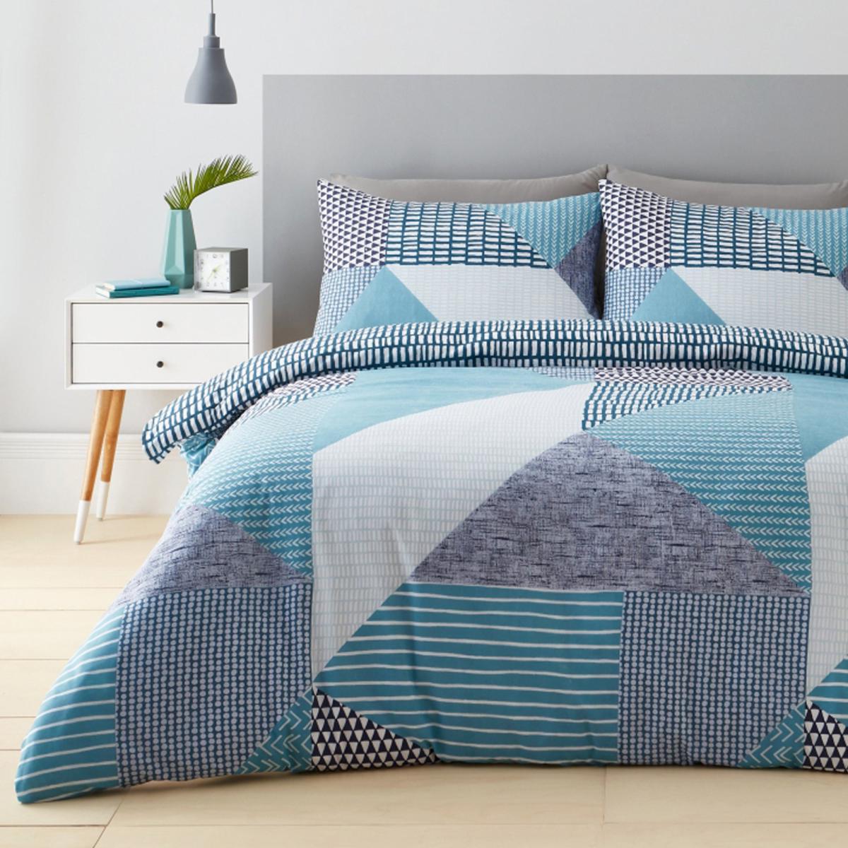 Larsson Geo is playful, bold and contemporary featuring large geometric shapes and rich teal painterly patterns, complimented with a patterned reverse for styling versatility. Crafted from a quality polycotton blend for a soft and durable finish, this set is available in a range of sizes to meet your bedroom requirements.