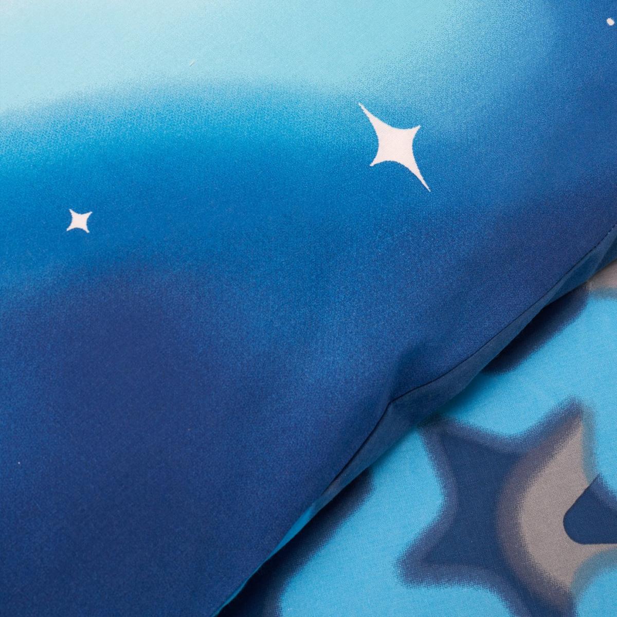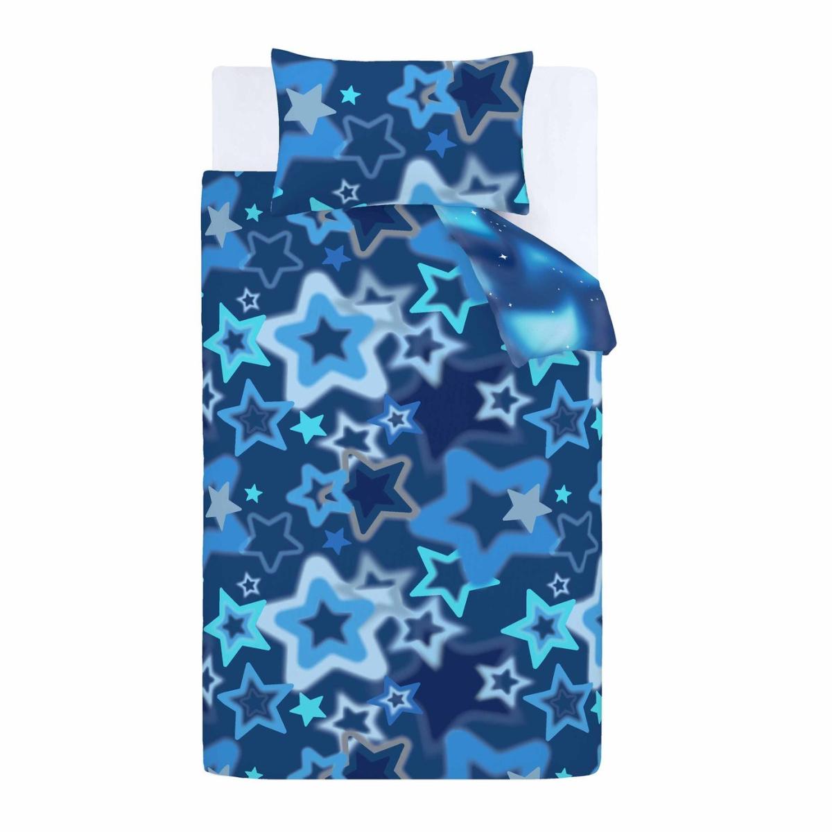 Drift off into a celestial wonderland with our starlight bedding set. Fully reversible with a cosmic ombre design, offering two stylish looks in one. It's like sleeping under a sky full of stars, every single night. Created from easy-care recycled polyester and soft cotton, perfectly blended for everyday use. This item carries the STANDARD 100 by OEKO-TEX logo, which means you can be certain that every component has been tested for harmful substances and is therefore harmless to human health. Set comprises of 1 duvet cover and 1 pillowcase. Blue. Fabric finish: printed. Size L200 x W135cm. Pillow case length 75cm, Width 50cm. Standard pillowcase (s). Reversible. Buttons for fastening. Machine washable. Suitable for tumble drying. 52% polyester, 48% cotton. 138 thread count.