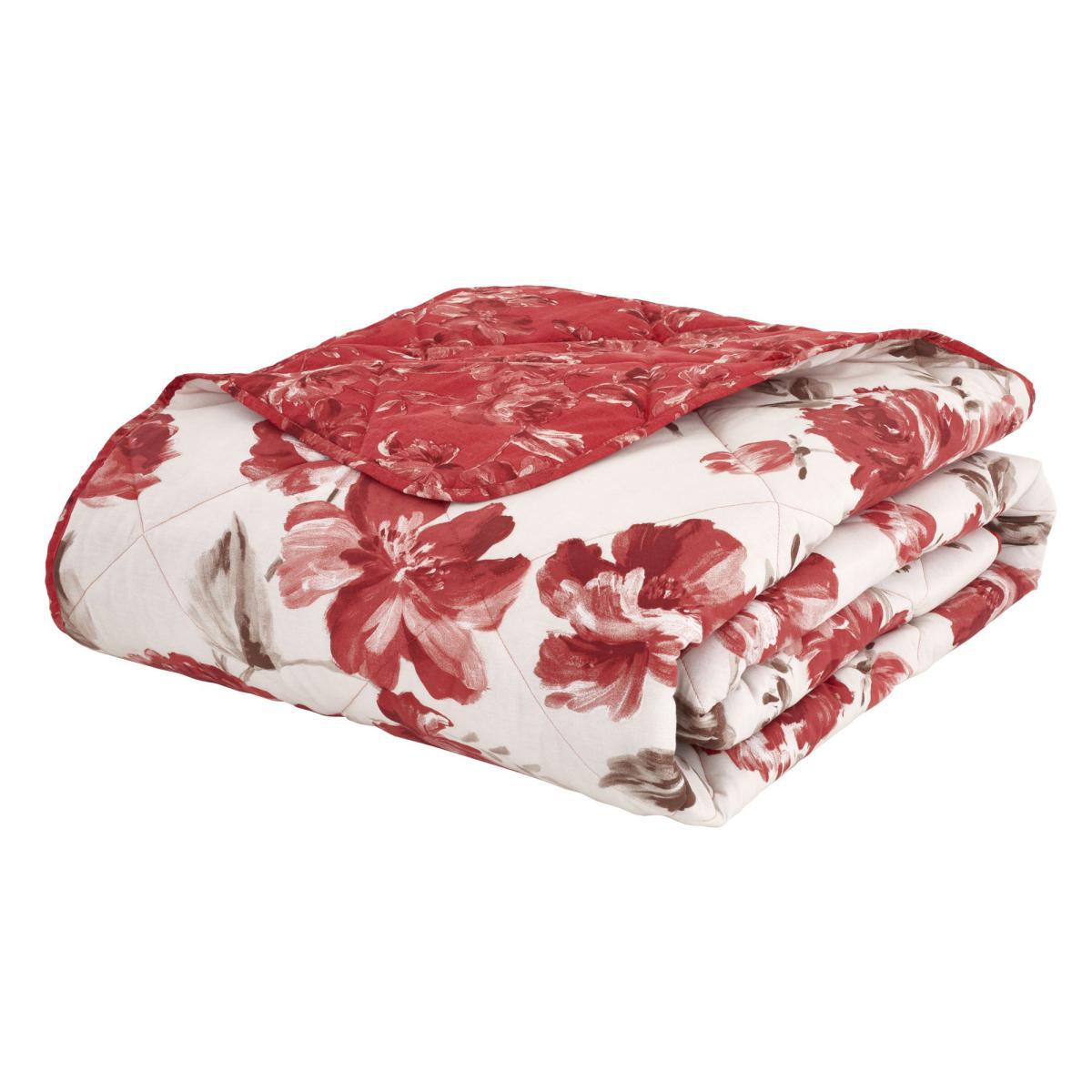 Catherine Lansfield Painted Floral Red Bedspread Red