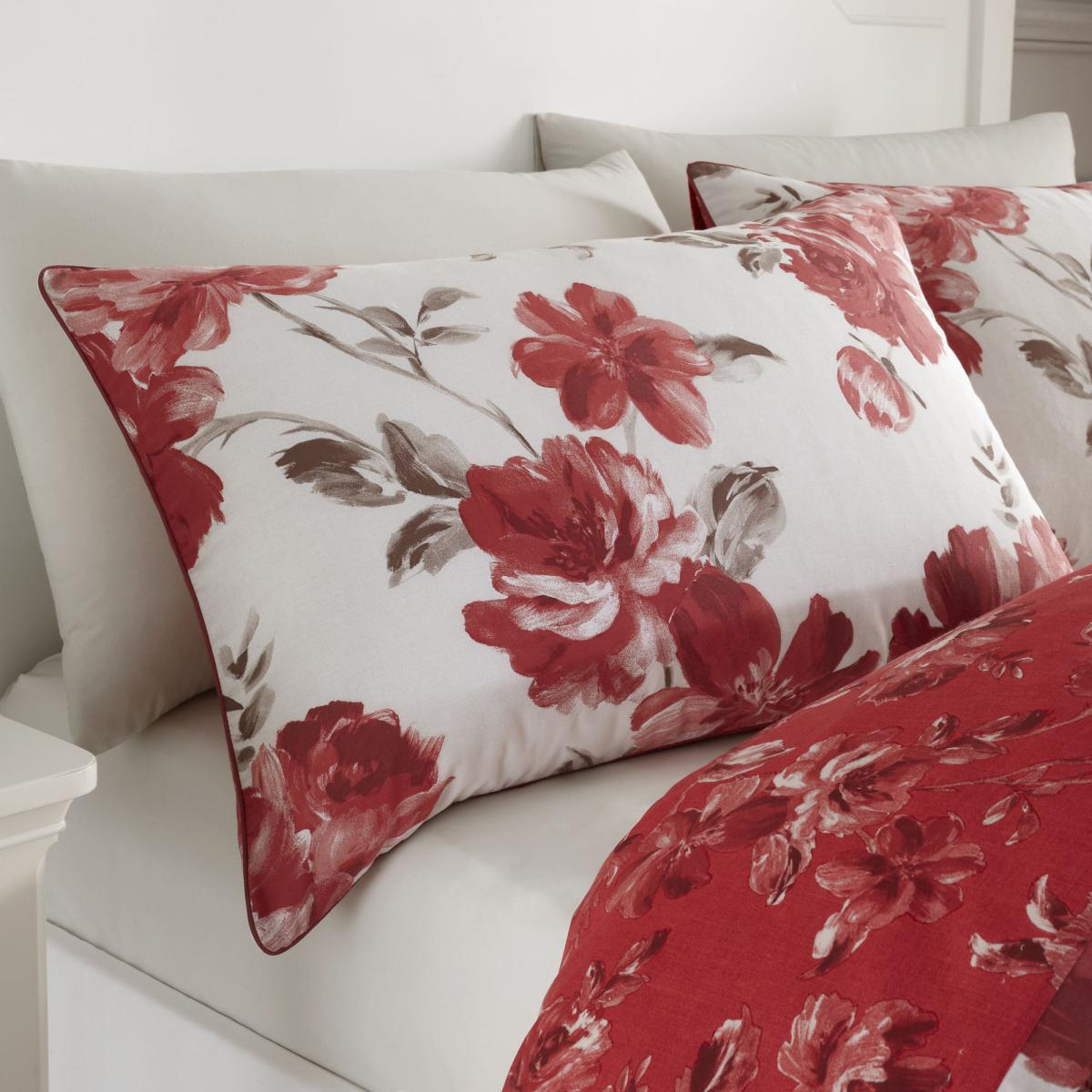 Catherine Lansfield Painted Floral Red Reversible Duvet Cover and Pillowcase Set Red