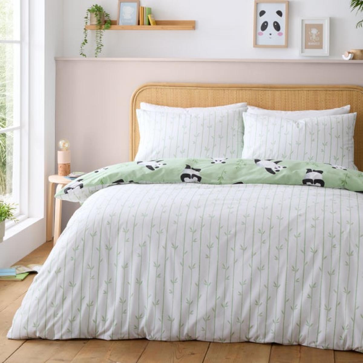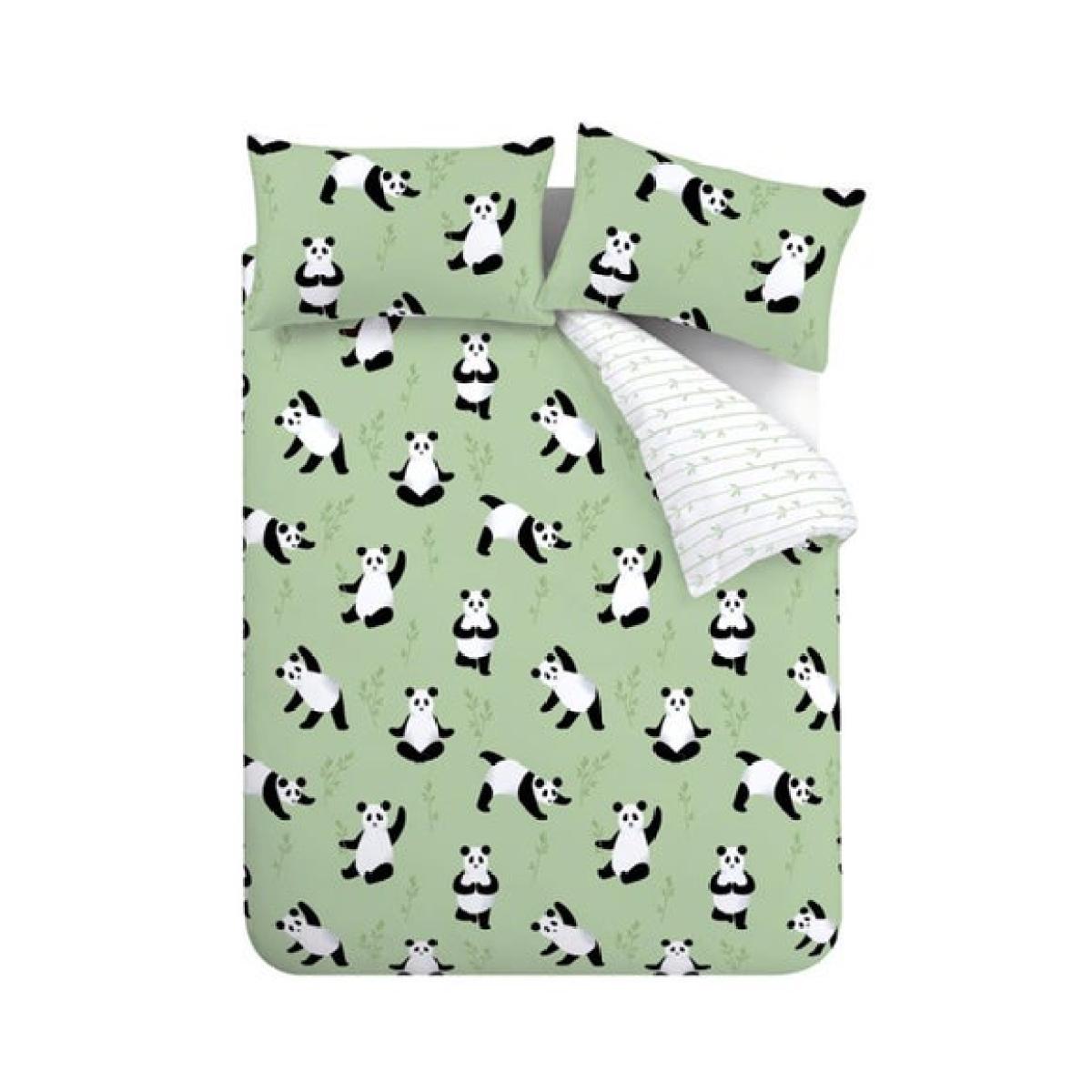 * Cute panda motif * Super soft material * Coordinating items available Bring a little panda-monium to bedtime with the Catherine Lansfield Panda Paws Duvet and Pillowcase Set. Designed in Great Britain with playful charm and everyday comfort in mind. This lovely set showcases a chilled-out panda striking a yoga pose, it's perfect for little ones who love animals and a touch of zen. Flip it over for a fun bamboo print on the reverse, giving you two adorable looks in one. Crafted from a soft polycotton blend, it's easy to care for and gentle on growing skin. With button fastening and an envelope pillowcase closure, everything stays snug and secure through every strech and snooze. A cosy, characterful addition to any child's room.