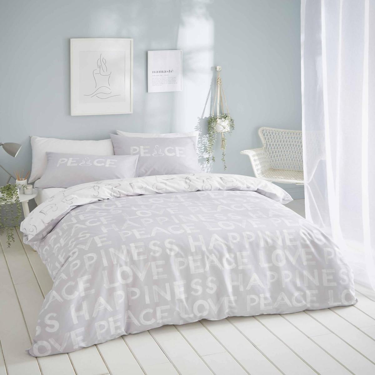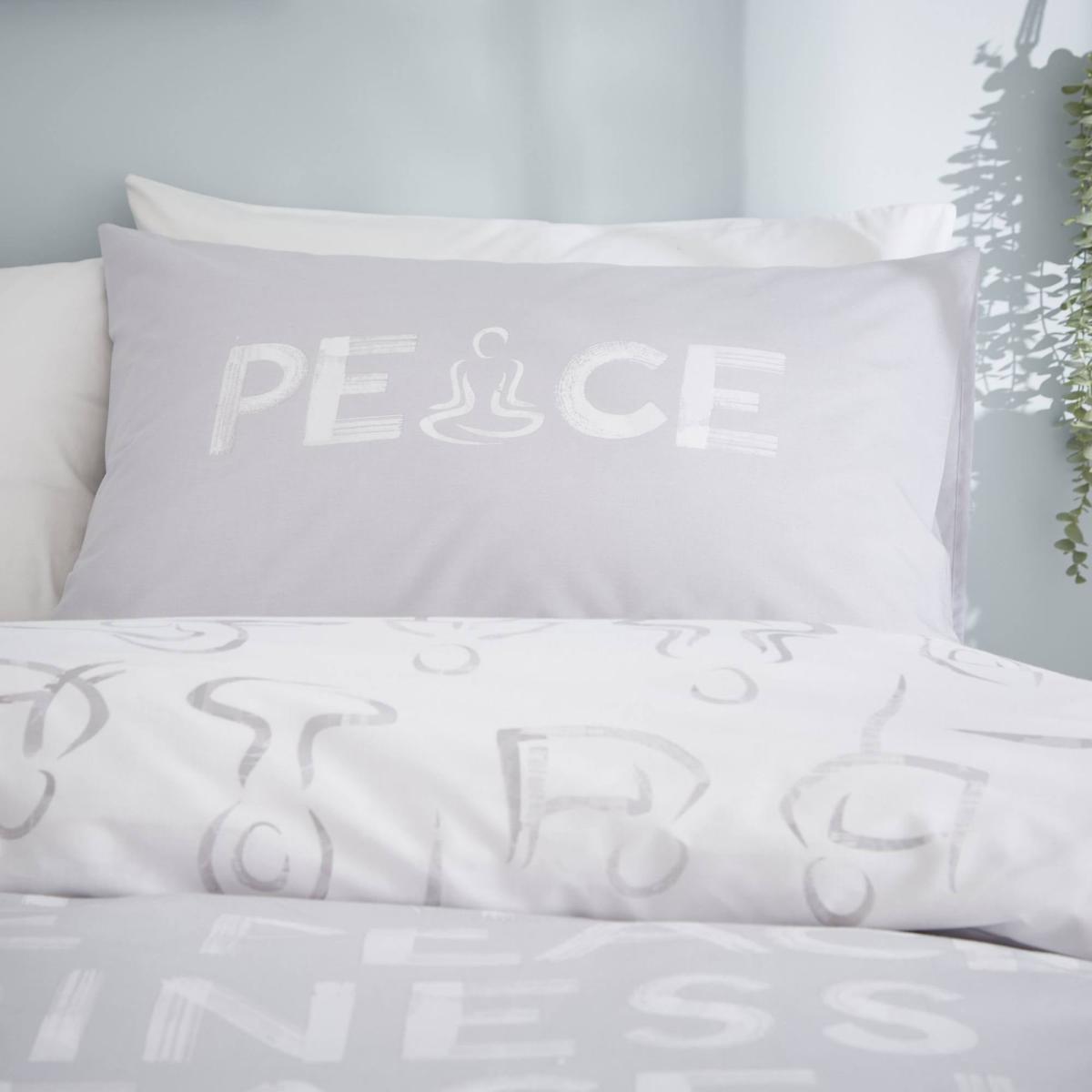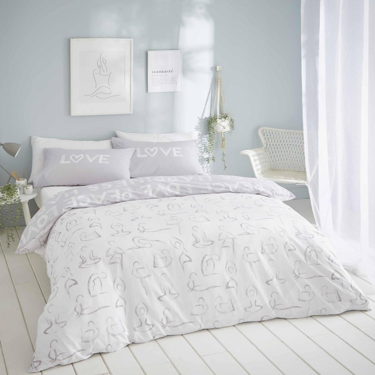 Catherine Lansfield Peace and Yoga Duvet Cover and Pillowcase Set Grey