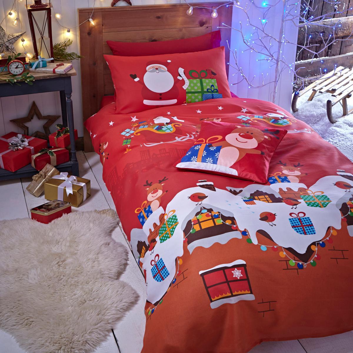 Spread Christmas cheer into your child’s bedroom with Santa’s Christmas presents duvet set by Catherine Lansfield. With a bright, festive red background, and cute cartoon Santa’s, reindeers and robins, this duvet set will bring excitement and fun in the lead up to Christmas!. Please note, unfortunately we cannot deliver this item to the Channel Islands.