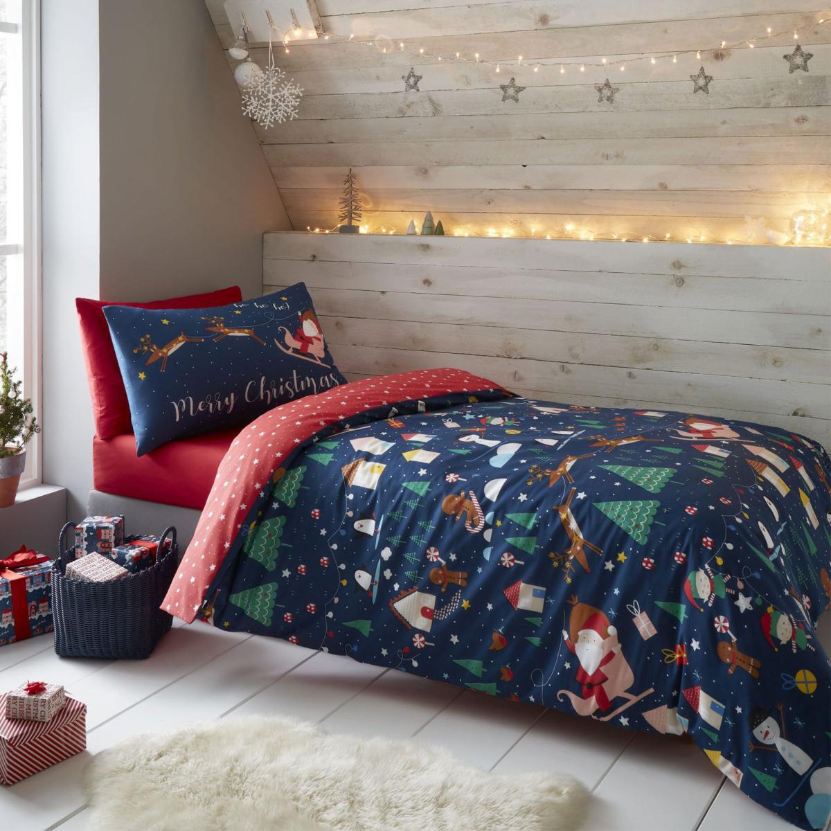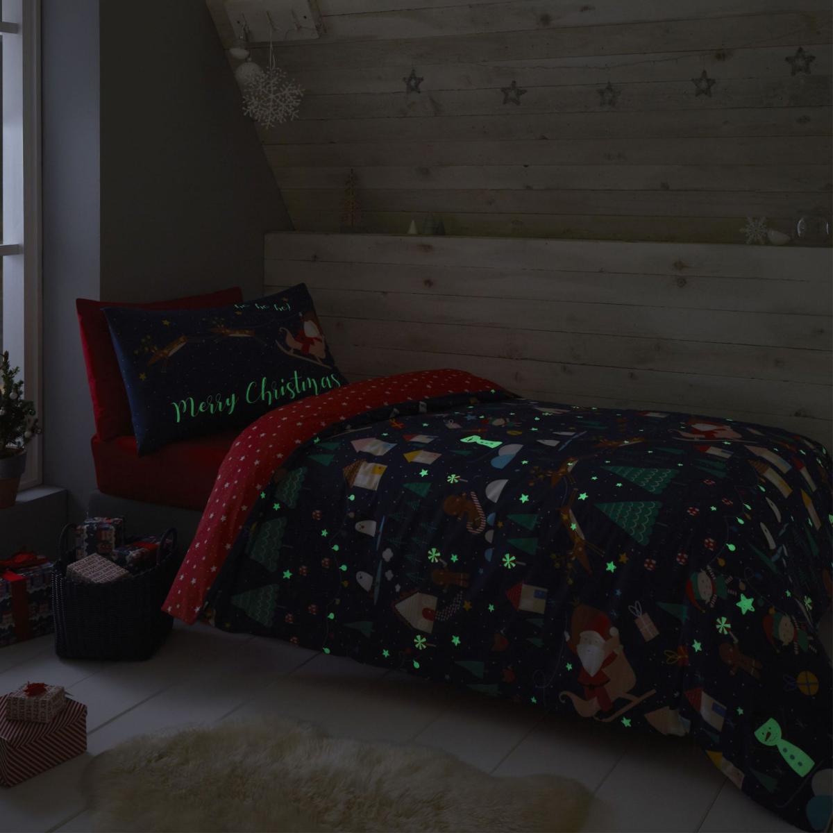 Add a sprinkle of festive cheer to your little one’s room with this fun printed design, perfect to set the Christmas Eve scene. The glow-in-the-dark snowflakes and snowman can act as a night glow to help them drift off to sleep ready for the big day. To see the glow-in-the-dark effect at its best, this product should be exposed to either bright day light or household lighting for at least 30 minutes before bedtime. The effect will initially become more obvious as your eyes adjust to the dark. There will still be some visibility of the glow effect for up to 30 minutes after you switch the lights off. Finished with a button fastening this set has been made to the quality of and human-ecological safety standards, in accordance with STANDARD 100 by OEKO-TEX®. Made from soft and comfortable easy care 52% Polyester 48% cotton fabric, the set requires minimal ironing and can be machine washed at 40 degrees.
