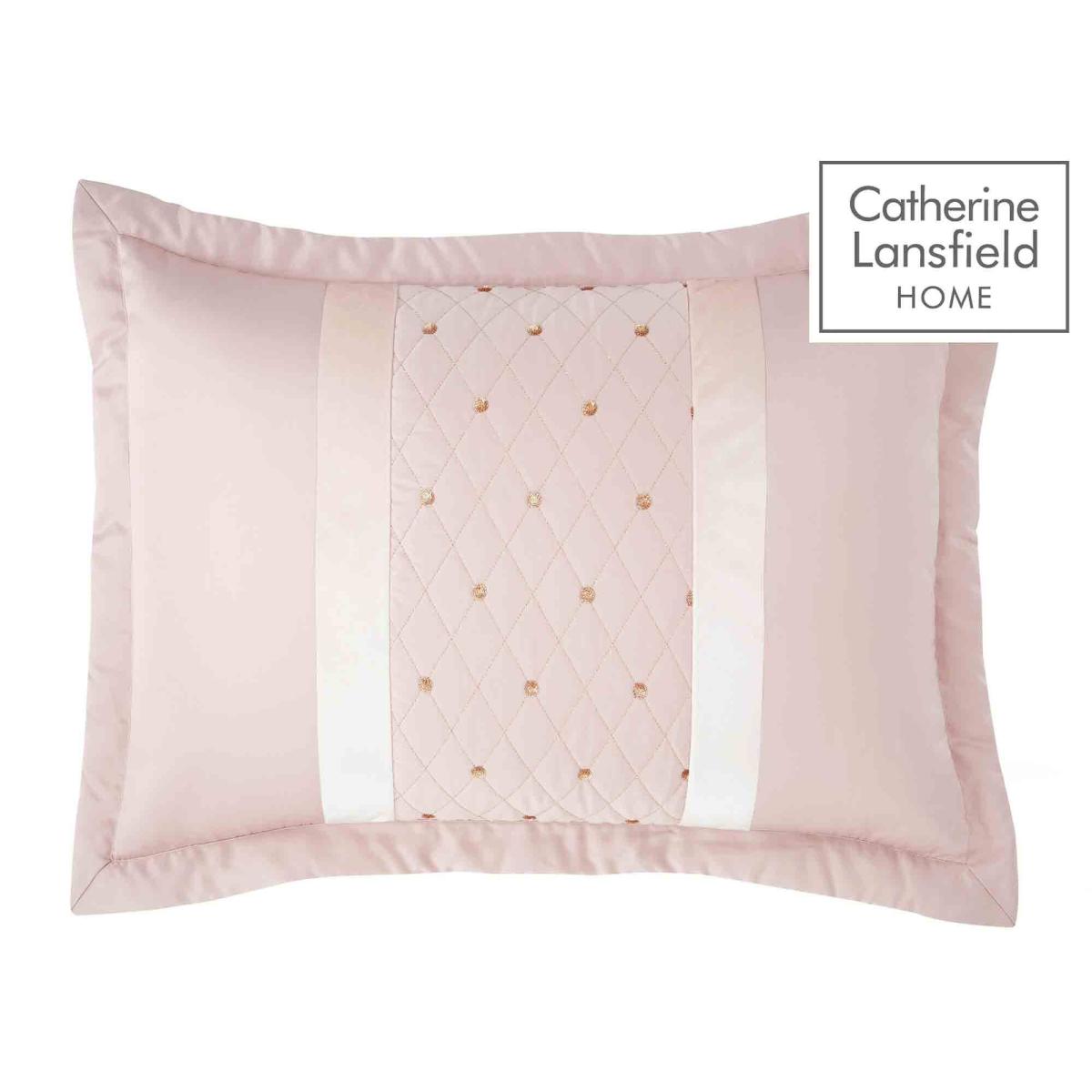 Luxe sequin cluster blush bedlinen is finished with a beautiful quilted border and embellished with sparkly sequin rosettes, perfect for adding a touch of glamour to your bedroom. These gorgeous pillowshams will look great when paired with the matching duvet set and bedspread from the same collection (each sold separately). Sold as a pair Fibre Content: 100% Polyester Matt Satin / 100% Polyester Velvet  Dimensions: 50cm x 75cm + 5cm flange All screens vary in colour reproduction and whilst every effort has been made to display the colour as accurately as possible it is for guidance only.