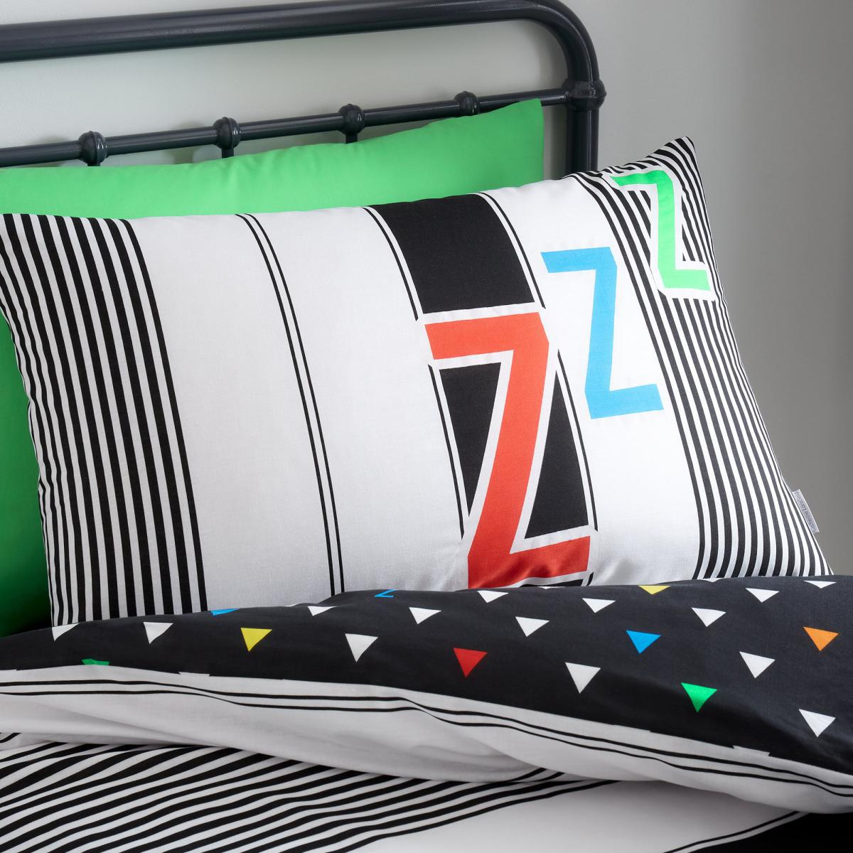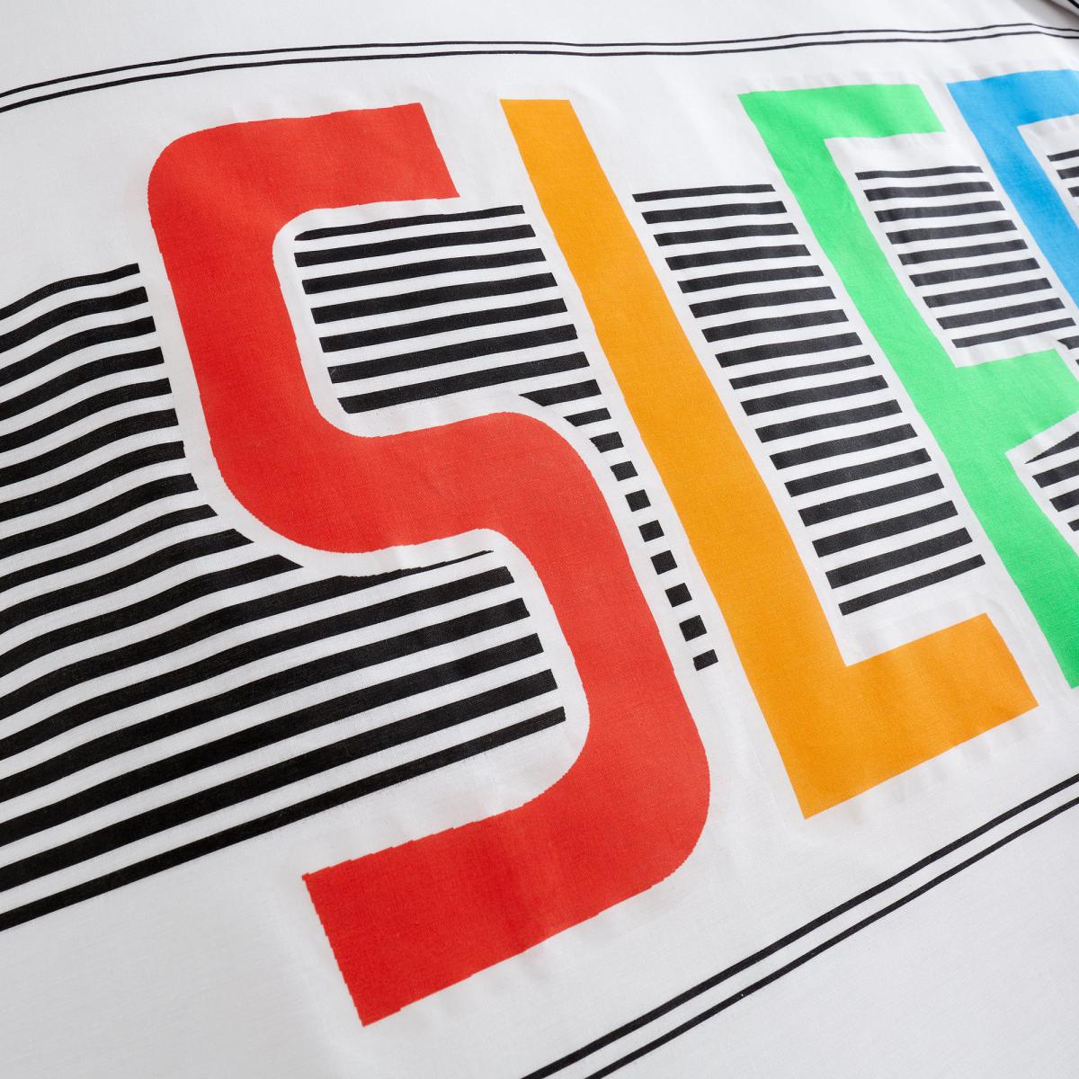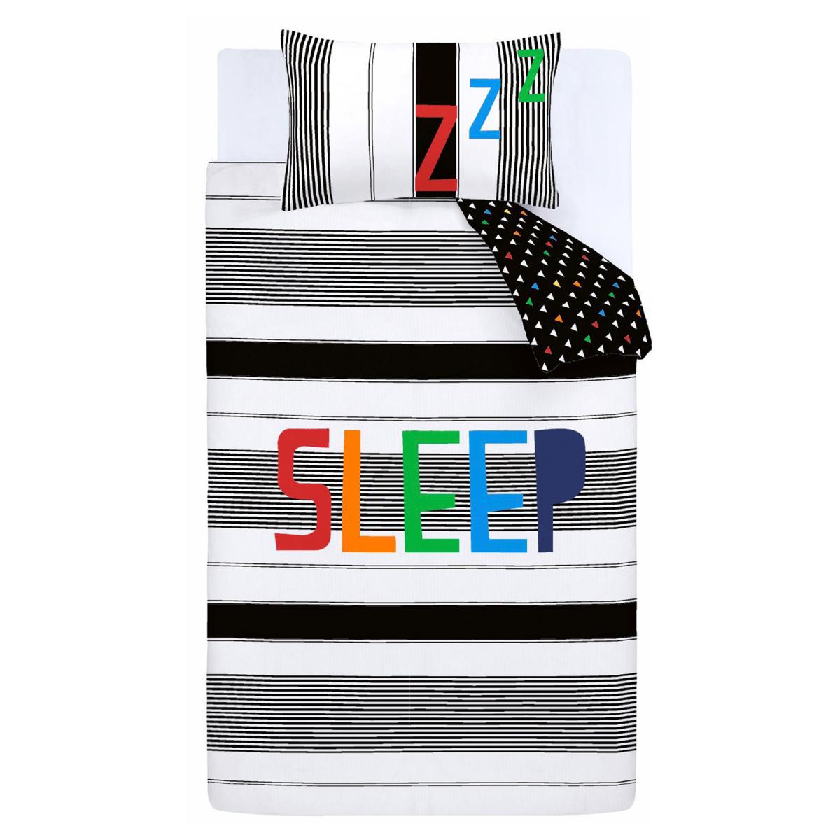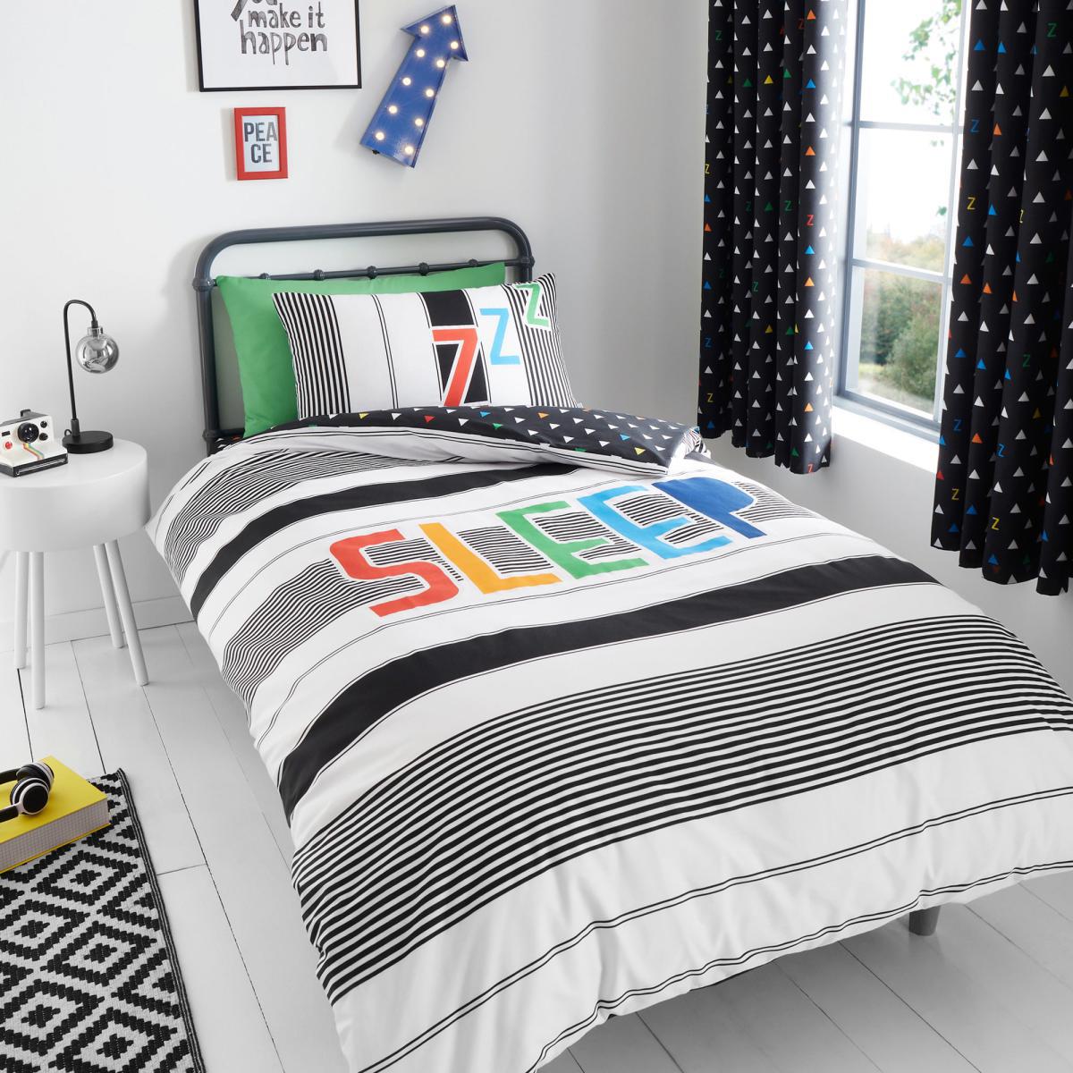 Sleep in comfort with this fun bold sleep text design layered on top of an array of stripes. With the additional glow in the dark outline around the sleep and zzz, this duvet set adds both fun and comfort whilst also being a soothing night light to help drift off to sleep. Catherine Lansfield is renowned for style and quality - designed and developed in Great Britain.