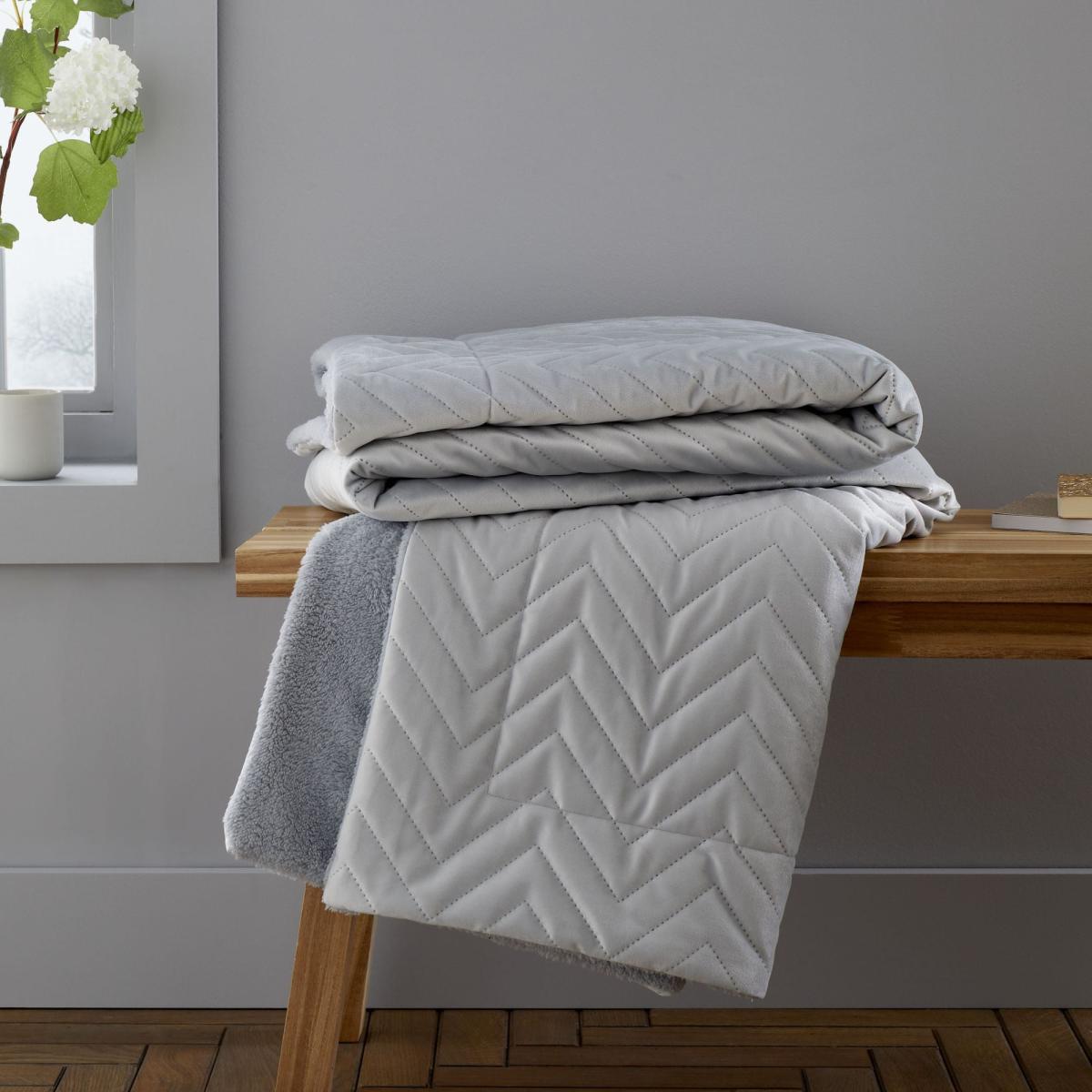Catherine Lansfield So Soft Velvet Touch Silver Zig Zag Pinsonic Throw Silver