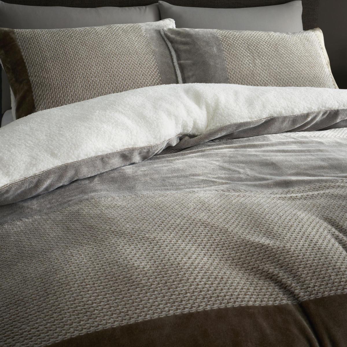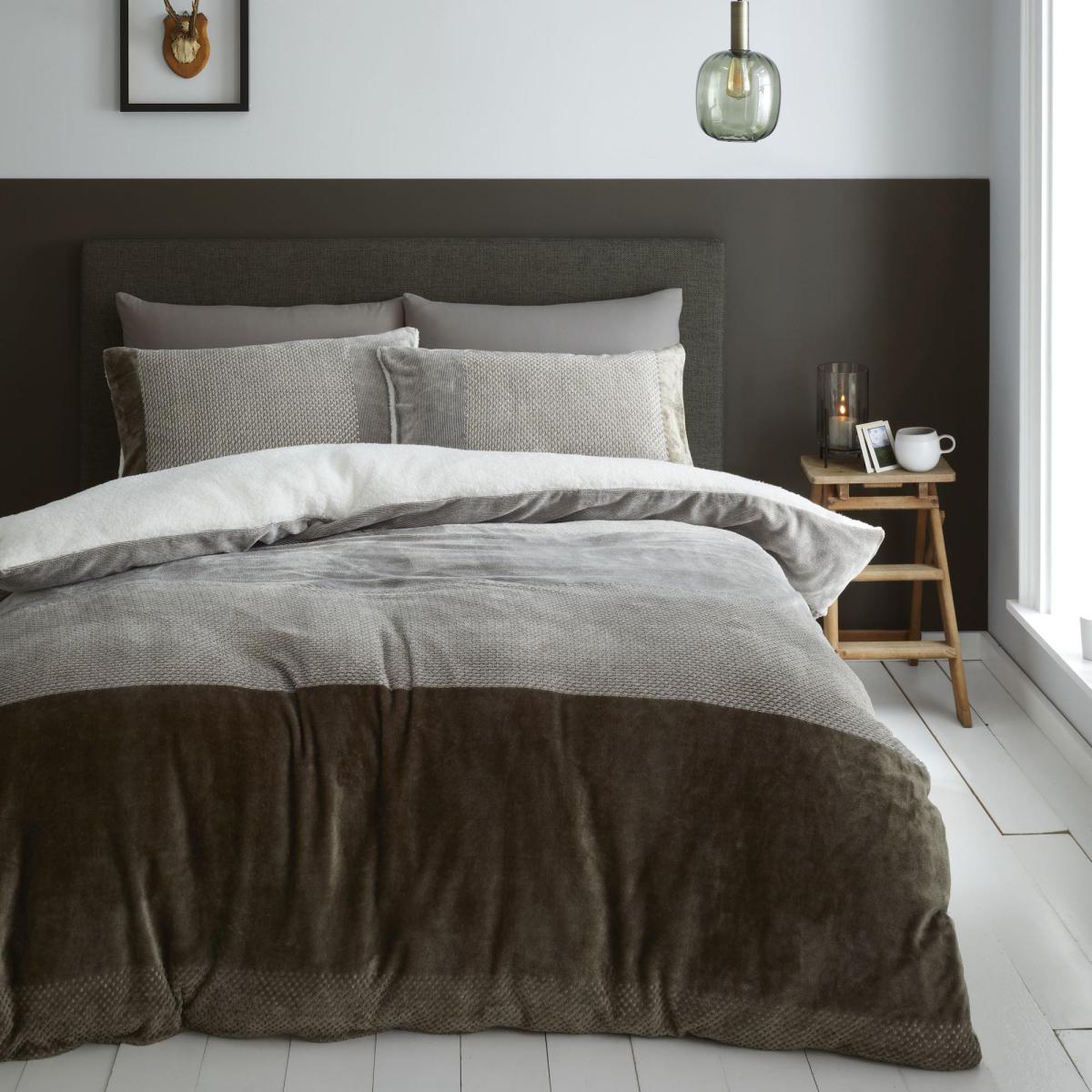 Catherine Lansfield is renowned for style and quality - designed and developed in Great Britain. Contemporary bands of soft textures in soft to touch velvets compliment the warm and cosy Sherpa reverse to incorporate both style and comfort to your room. Catherine Lansfield products are designed and developed in Great Britain, ethically sourced overseas and made to strict quality and human-ecological safety standards. This set is made from machine washable soft polyester. This set is available in a range of sizes.