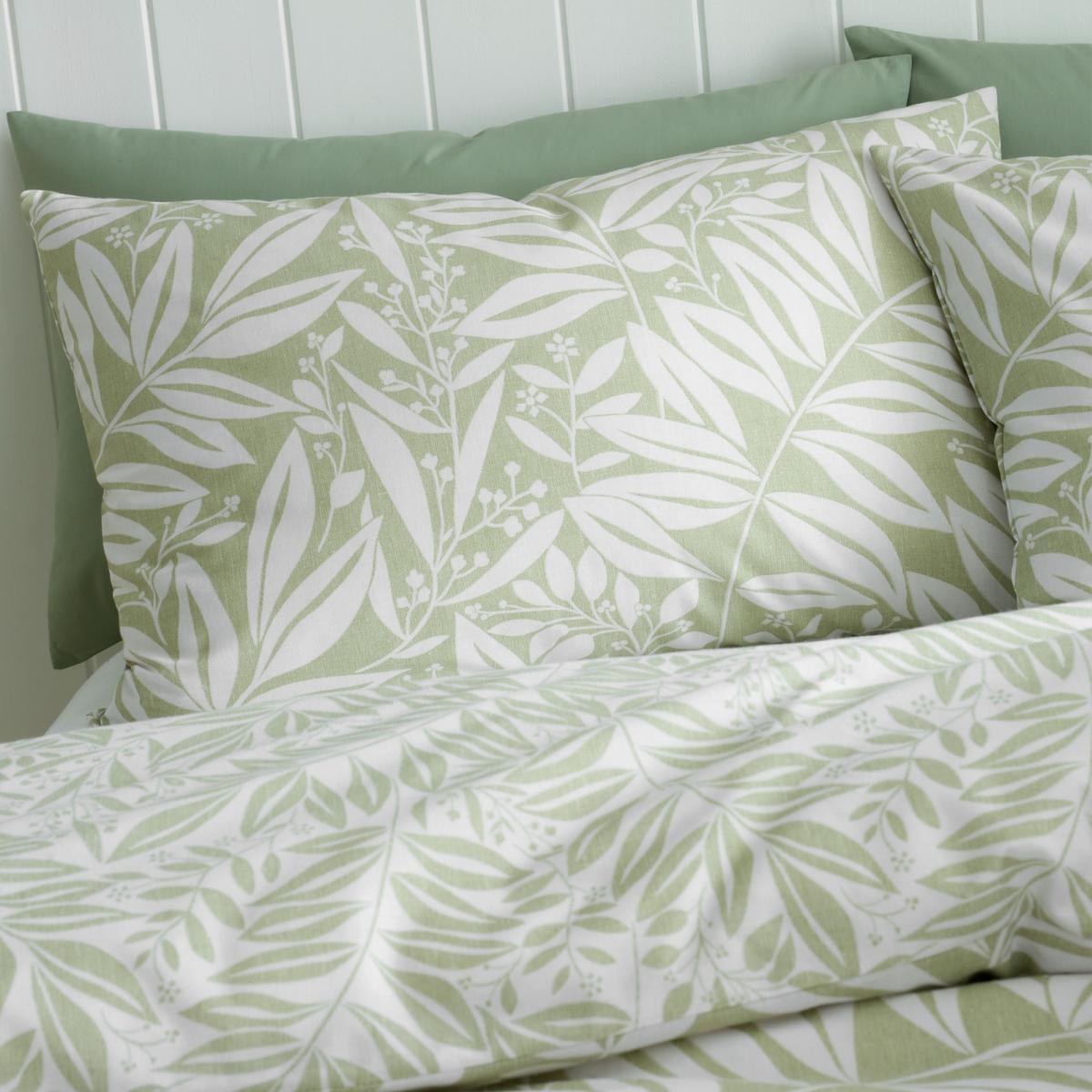 Bring the beauty of nature into your bedroom with the Catherine Lansfield Sorrel Leaf Duvet Set in Green. Featuring an elegant botanical leaf design in calming shades of green, this duvet set creates a serene and refreshing atmosphere. The soothing pattern is perfect for creating a peaceful sleep space, while the natural tones effortlessly complement various bedroom décors. Made from soft, easy-care cotton-blend fabric, this duvet set is designed for comfort and convenience, ensuring a restful night’s sleep while adding a touch of natural elegance to your room. Fully Reversible: For two stylish looks in one. Button Duvet Fastening: To keep your duvet securely in place. Envelope Pillowcase Closure: Providing a secure and snug fit for your pillow. 52% Polyester 48% Cotton 132 Thread Count Includes Single Duvet Includes Single Pillowcase Double, King and Superking Size Duvet Includes Pair of Pillowcases Care Instructions Wash Before Use. Machine Wash at 40 Degrees. Tumble Dry Safe. Please note All screens vary in colour reproduction and whilst every effort has been made to display the colour as accurately as possible it is for guidance only.