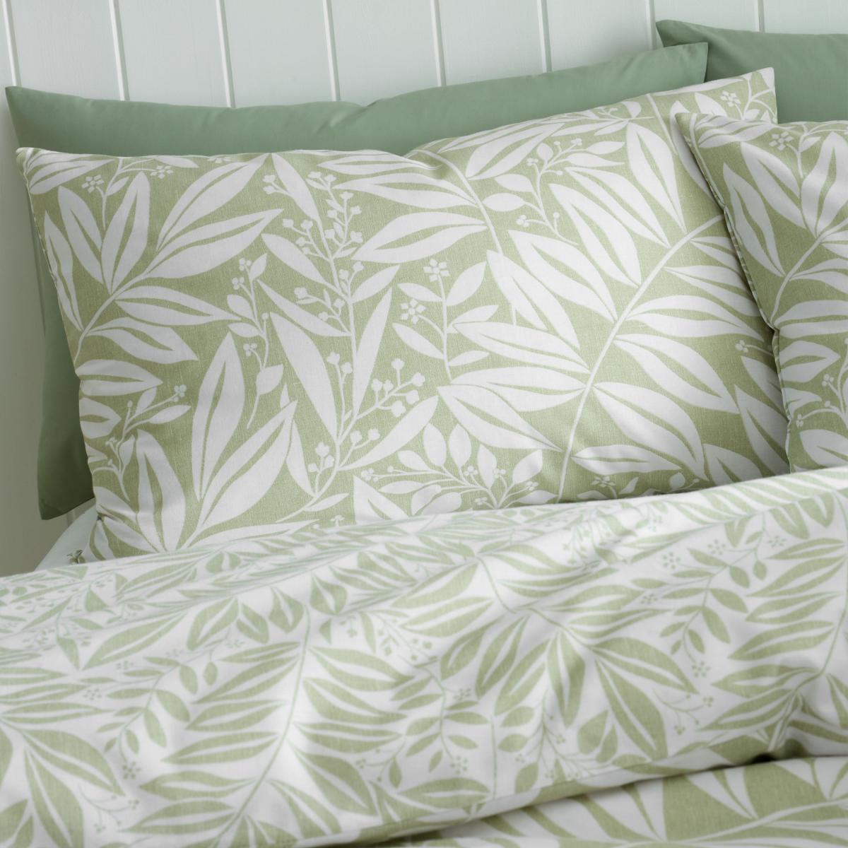 * Duvet and pillowcase set * Choice of colour and size * Button fastening * Restful botanical print * Reversible Bring a touch of nature indoors with this soothing Sorrel Leaves Reversible Duvet Cover and Pillowcase set by Catherine Lansfield. Featuring a fresh botanical print on one side and a ditsy leaf design on the reverse, it’s easy to switch up your style in seconds. Made from a soft blend of polyester and cotton, it’s gentle on the skin easy to care for. Designed with everyday ease in mind, it’s machine washable and tumble dryer friendly. A button fastening keeps your duvet secure, while envelope closures offer a neat finish for your pillows. Thoughtfully designed in Great Britain with Catherine Lansfield’s signature style and quality. This product is OEKO-TEX® MADE IN GREEN certified, meaning it was produced in OEKO-TEX® STe P certified factories - verifying environmental, social, and chemical standards in the facility. It has also been certified to OEKO-TEX® STANDARD 100, the original safety standard for everyday confidence. To offer full visibility, the production stages throughout the supply chain can be traced.