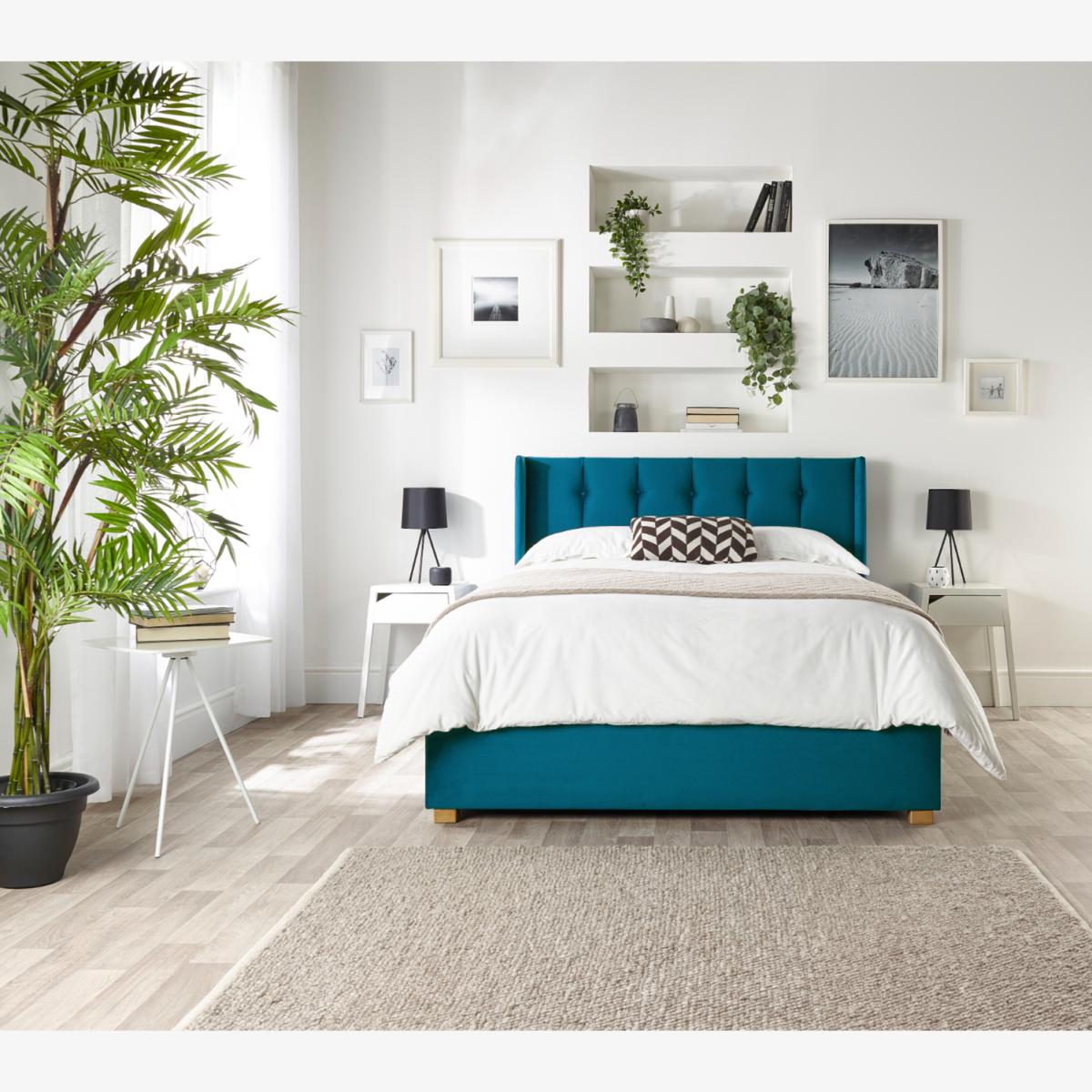 Stylish ottoman bed manufactured in the UK and upholstered in a beautiful, brushed velvet fabric. The hand upholstered headboard features deep padding and a gorgeous, winged headboard with a buttoned vertical design. Choose from emerald, blush, light silver, steel, and navy fabric finishes. The design is finished off with stylish solid hard wood feet. The ottoman bed provides vast storage that can be easily accessed with gas lift pistons, once the mechanism is open it will hold in place allowing hands free access to the large storage area. The bed comes completely with a dust sheet to keep the storage are clean, please note the storage area is not a boarded base. The bed features quality spring slats for added comfort and support. The mechanism is capable of lifting mattress with a weight of up to 60kg. The bed is supplied flat pack, assembly takes 1-2 hours and is easier with 2 people. The bed meets UK safety standards and has also passed non-mandatory structural testing for peace of mind.