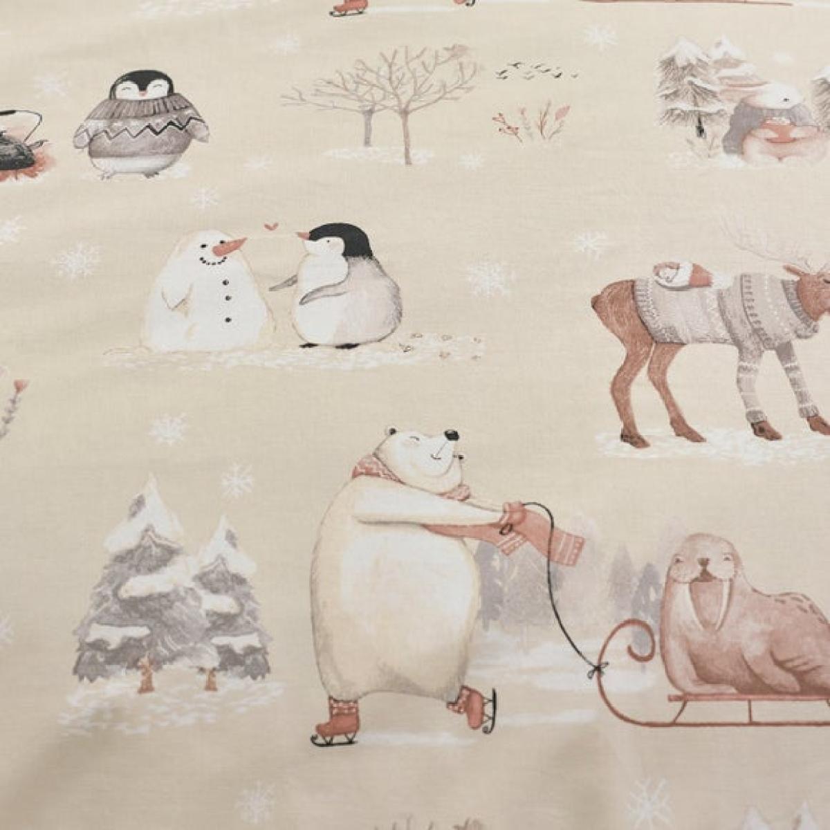* Soft and durable Polycotton composition * Cosy, winter themed design * Button closure * Corresponding items available * Machine Washable Snuggle up with the sweetest winter companions in this adorable sherpa duvet set. Featuring playful woodland animals enjoying the snowy season, it’s sure to bring smiles on frosty mornings. The plush sherpa reverse adds warmth and comfort, making it a festive favourite for the whole family.