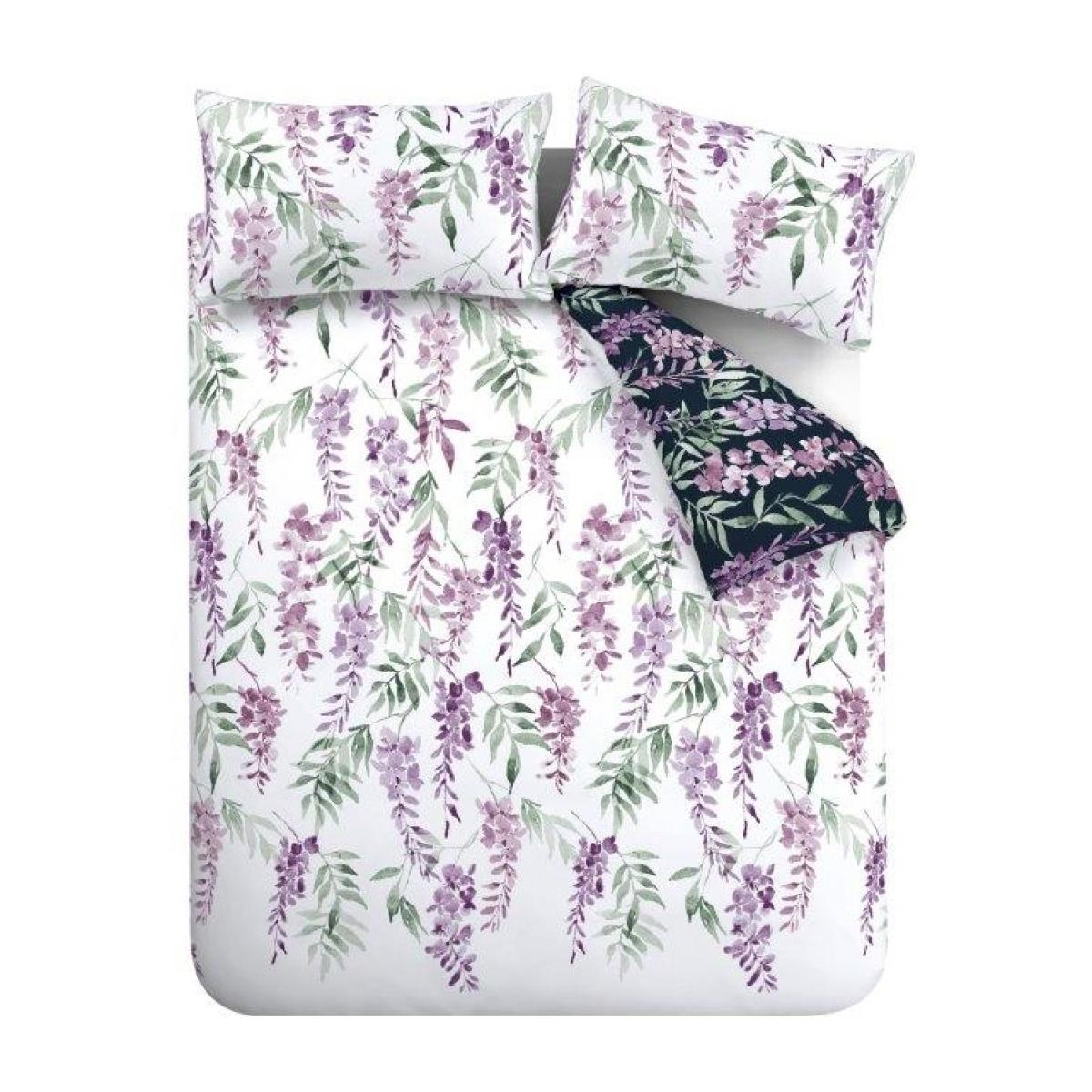 Catherine Lansfield Bedding Wisteria Duvet Cover Set with Pillowcases White / Navy. Bring the beauty of the outside in with this whimsical wisteria bedlinen. Painterly style flowers with contrasting backdrops trail down this fully reversible bedlinen fashioning an beautiful look for all seasons. Created from easy-care and durable polycotton fabric perfect for everyday use. Fully Reversible, Button Fastening, Easy-Care.52% Polyester 48% Cotton Wash Before Use. Machine Wash at 40 Degrees, Tumble Dry Safe. Ethically sourced overseas and made to quality and human-ecological safety standards, in accordance with MADE IN GREEN by OEKO-TEX. Better Cotton- By choosing our cotton product, you're supporting Catherine Lansfield's investment in Better Cotton's mission. Better Cotton is sourced via a chain of custody model called mass balance, this means that this product may not contain Better Cotton, however Better Cotton Farmers benefit from the demand for Better Cotton in equivalent volumes to those used. Set includes: Duvet cover and 2 x Standard pillowcases (1 x pillowcase in single set) All screens vary in colour reproduction and whilst every effort has been made to display the colour as accurately as possible it is for guidance only.