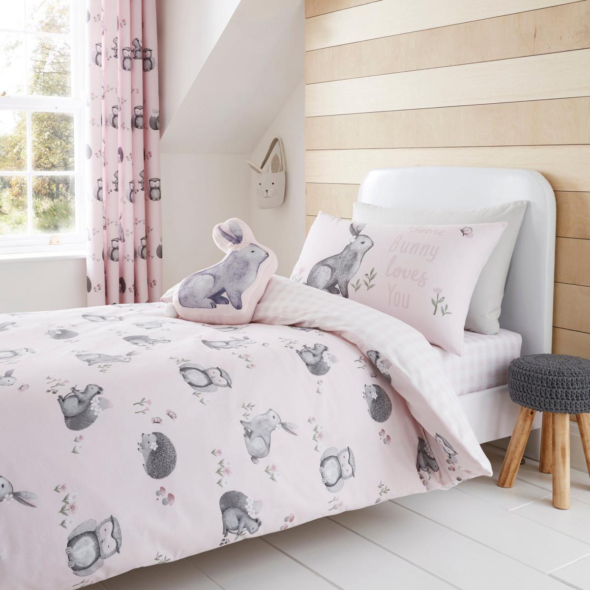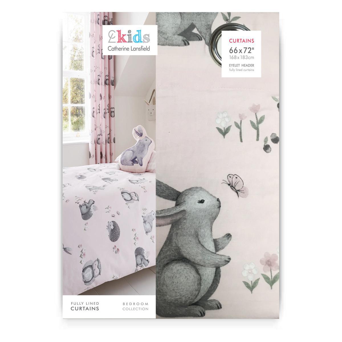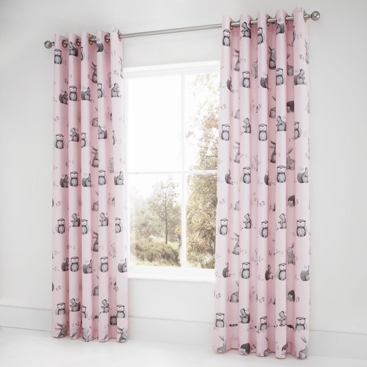 Catherine Lansfield Woodland Friends Eyelet Curtains Pink