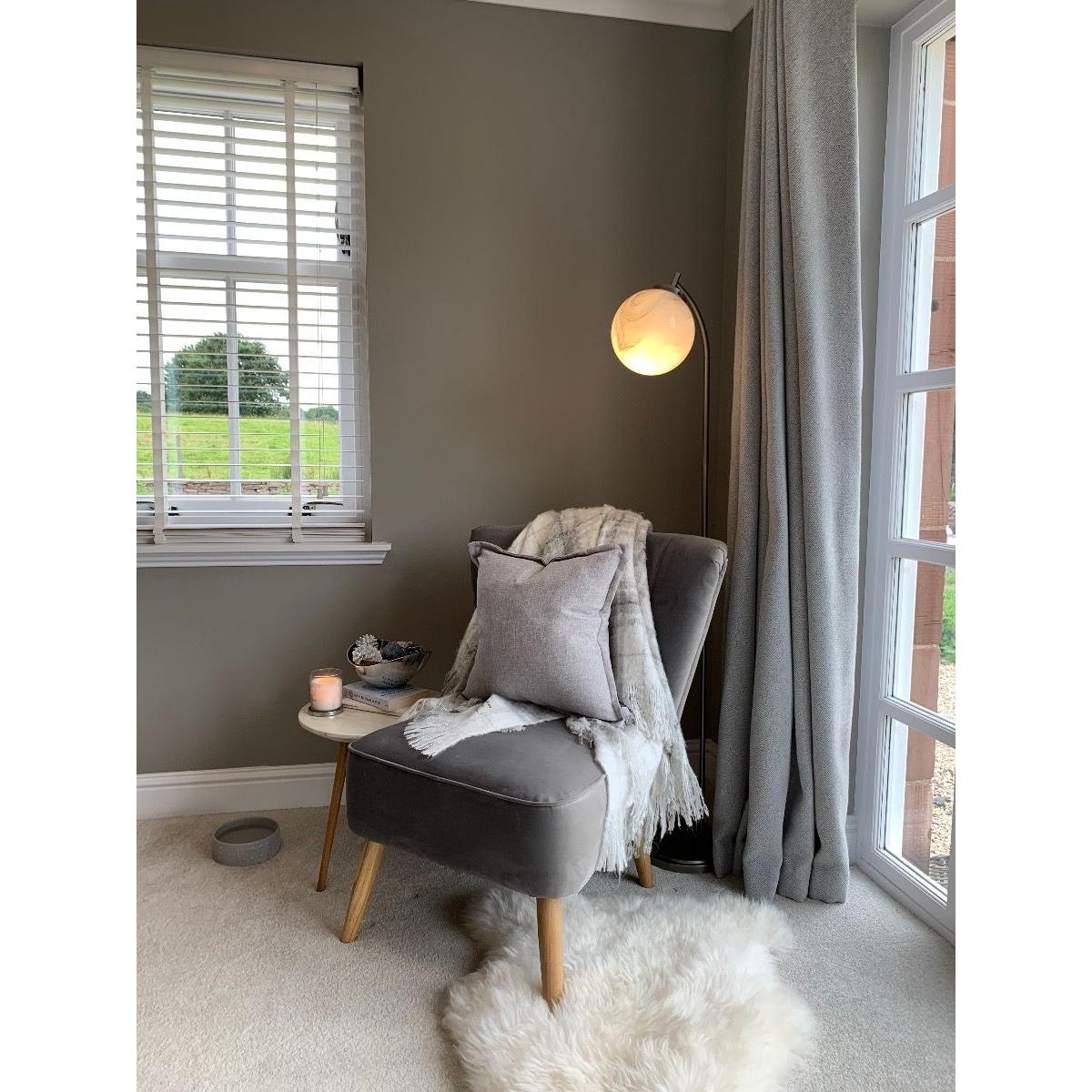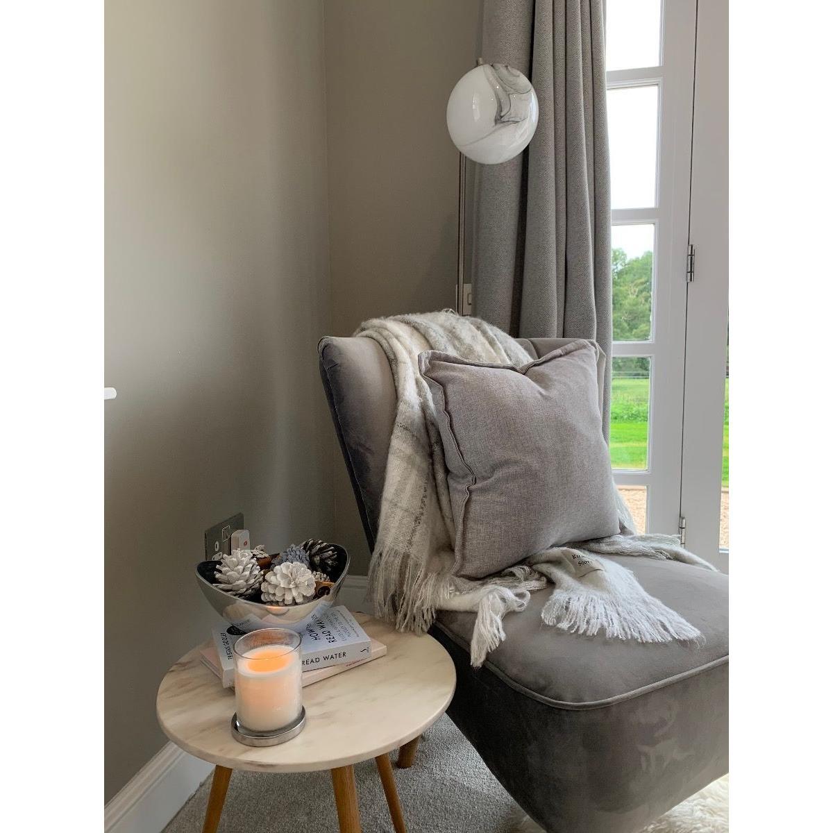 I love this lamp for its sleek, modern look that can elevate a variety of interior styles. Its marble and glass accents add a touch of sophistication, making it a great choice for contemporary, minimalist, or even eclectic spaces. Practical styling tips include placing it next to a comfortable reading nook or as a statement piece in a living room to balance functionality with design. Its understated elegance works well in both neutral palettes and more eclectic schemes, and the marble detail provides a subtle luxe touch that’s versatile enough to complement metallics or soft fabrics. A great all-rounder that offers both form and function.
