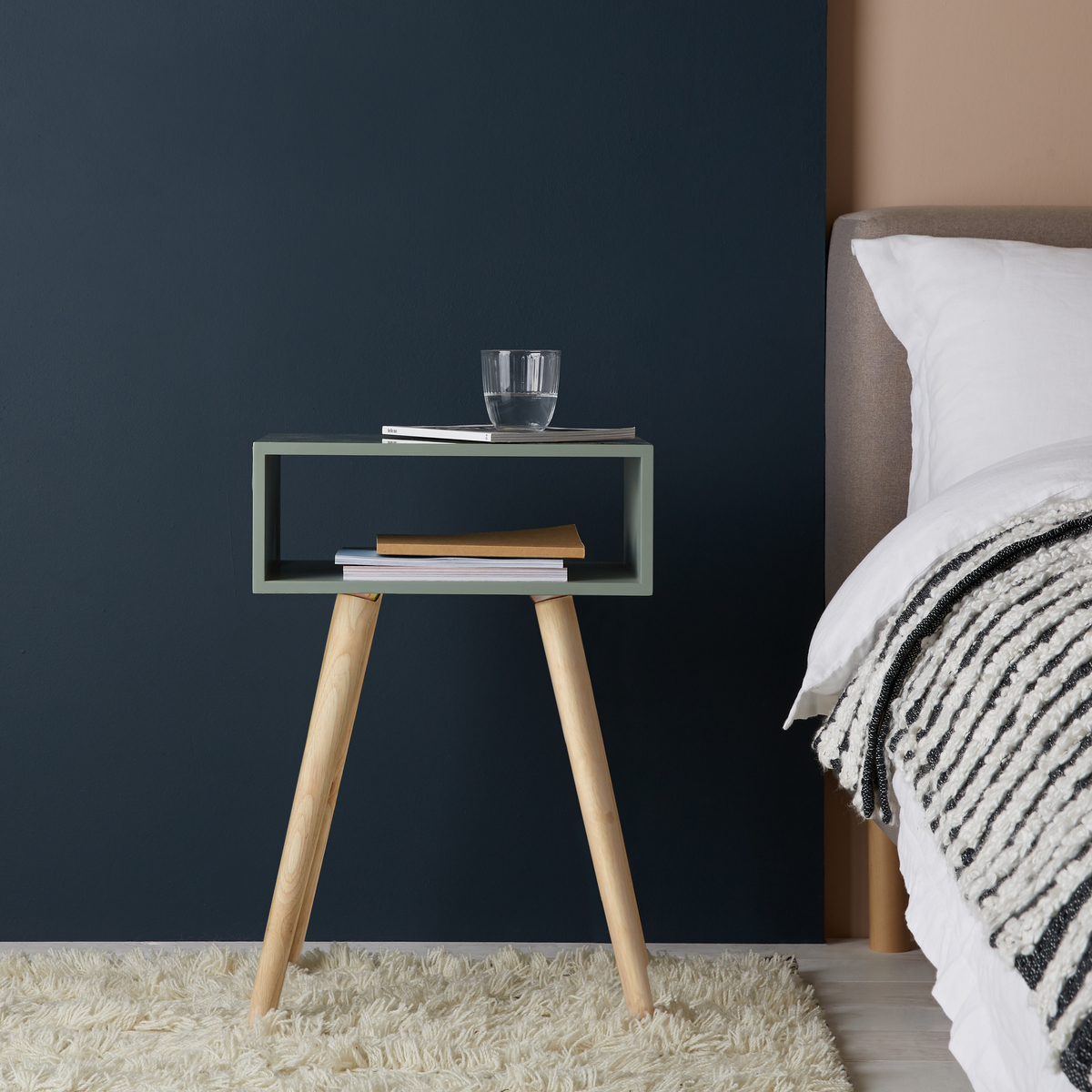 The Cato sage green side table with storage and solid wood legs is a versatile design, equally at home next to a sofa or beside a bed. Made from gloss-lacquered wood with rubberwood legs, the table is strong and hard-wearing, and its shelf provides storage for books, magazines and remote controls. Designed in house and exclusive to Habitat, the side table is part of the Cato range, which includes side tables, desks and characterful dressing tables in a choice of colours.