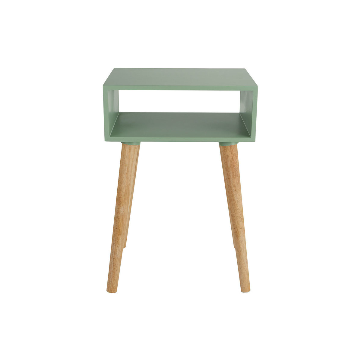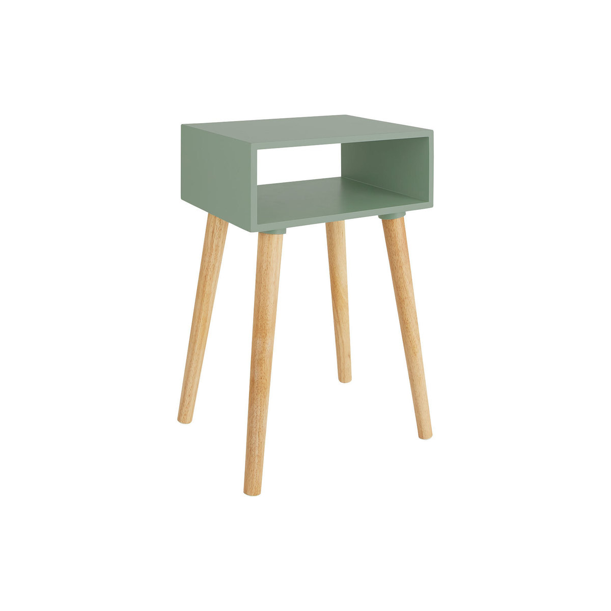 Cato Sage Green Side Table With Storage And Solid Wood Legs, Green Green