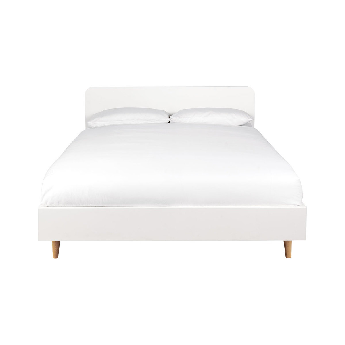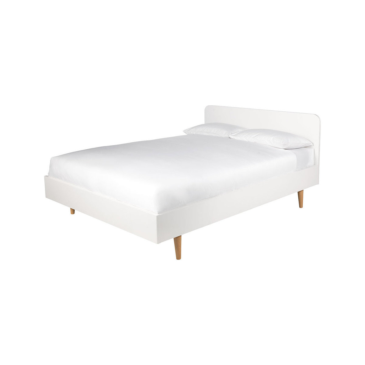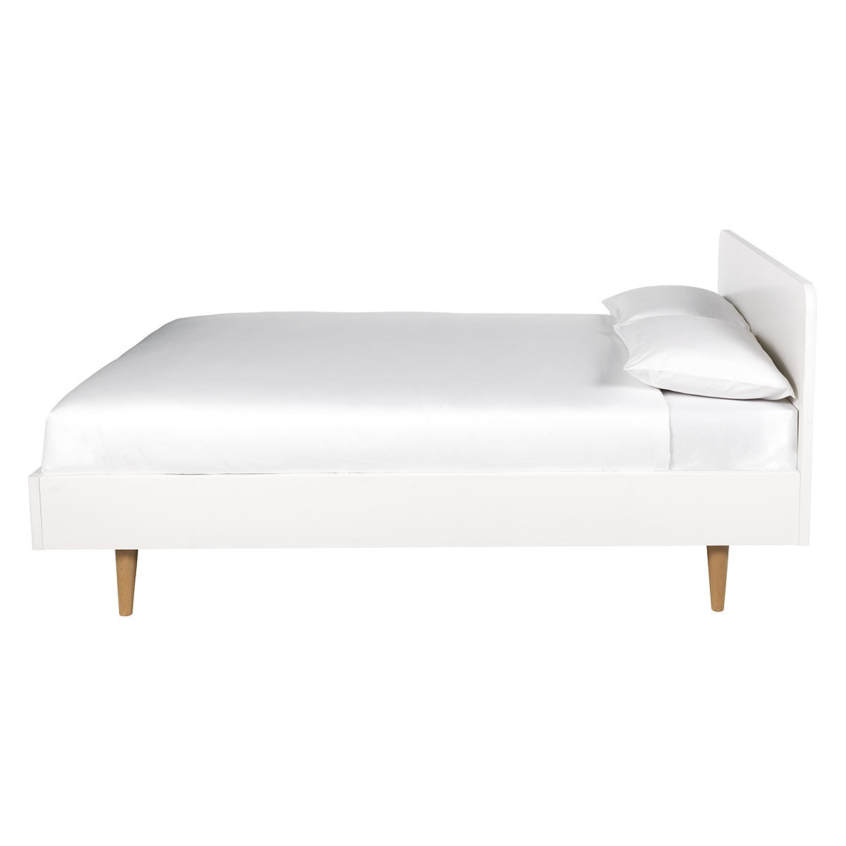 Classic, stylish and affordable, the Cato white kingsize bed is a clean-lined design that’s perfect for small space living. Made in Europe, the bed’s painted white finish will add a light, fresh feel to your bedroom. Matched with slightly tapered solid wood legs and a gently curved headboard, the sophisticated design doesn’t compromise on comfort. The slatted base extends the lifetime and comfort of your mattress and ensures long-lasting support whilst sleeping. Part of the Cato range, match with the complementary wardrobe and chest of drawers for a complete, contemporary look.