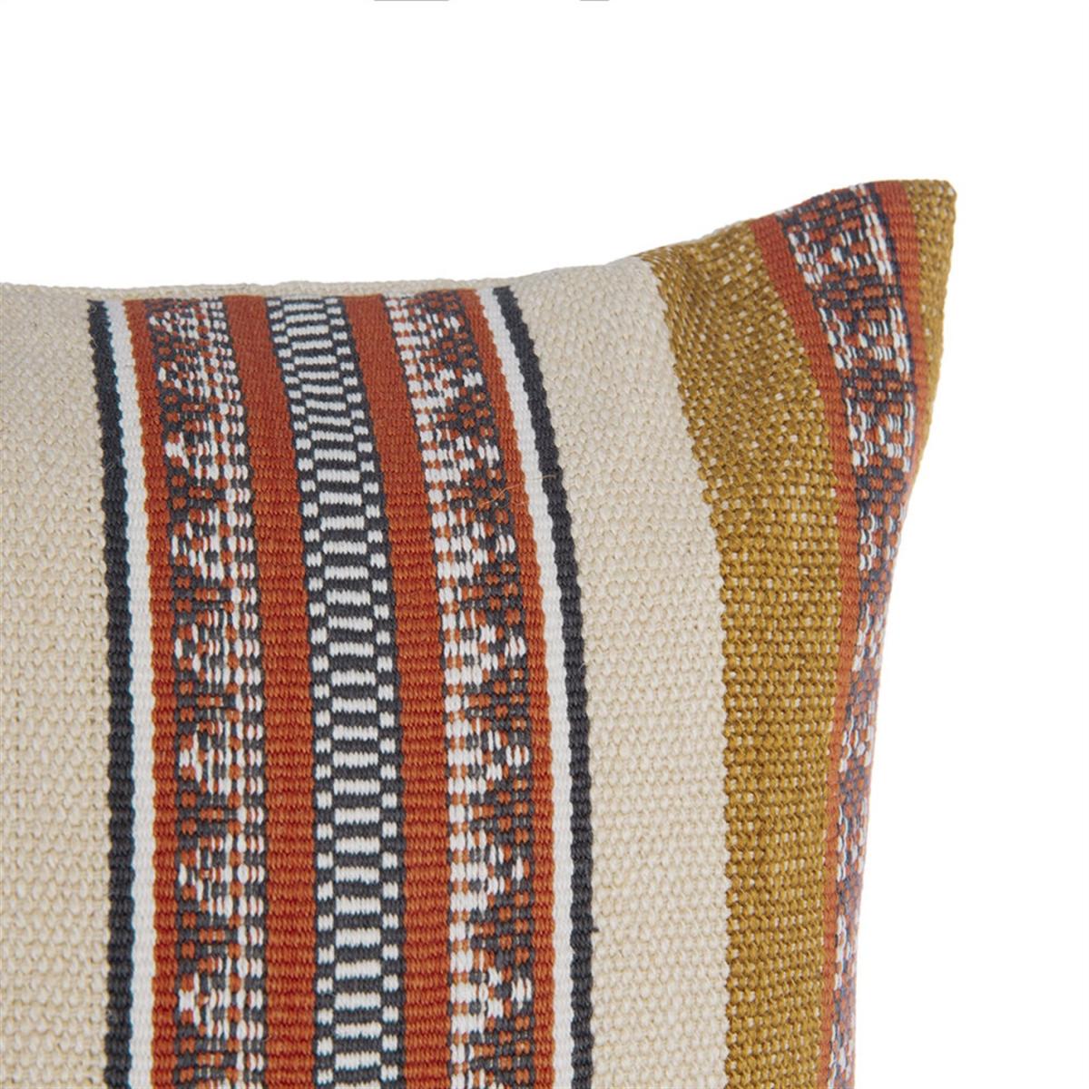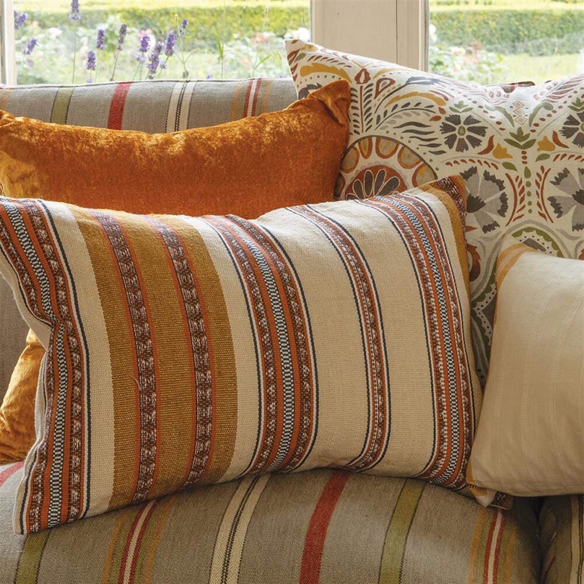 I’m a fan of the Catori cushion for its earthy terracotta and ochre stripes that bring subtle warmth to both minimalist and boho schemes. It pairs especially well with neutral linen sofas, rattan-fronted furniture or a Scandi-inspired setting where you want a hint of global character. For styling, layer it with plain cushions in cream or rust tones, add a woven throw in a complementary hue, or perch it at one end of a window seat or daybed to introduce pattern without overwhelming the space.