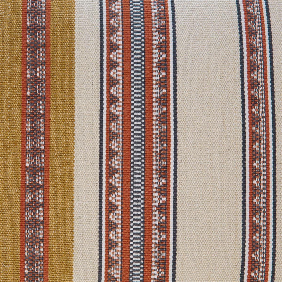 Bold and eye-catching, the Catori Cushion from William Yeoward features striking banded stripes of harmonious hues. The jacquard detailing gives a sophisticated feel to this versatile cushion, which harnesses an extra layer of texture blending a mix of cotton and jute.