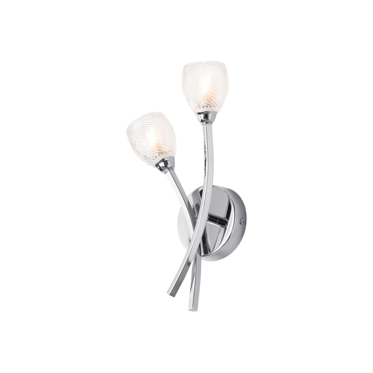 Bring practical style to your home with the Catri 2 Light Bathroom Wall Light, with decoratively curved arms offered in a sleek chrome finish. This ribbed glass wall light will suit any room, but comes IP44 rated so can be safely installed in bathrooms too.