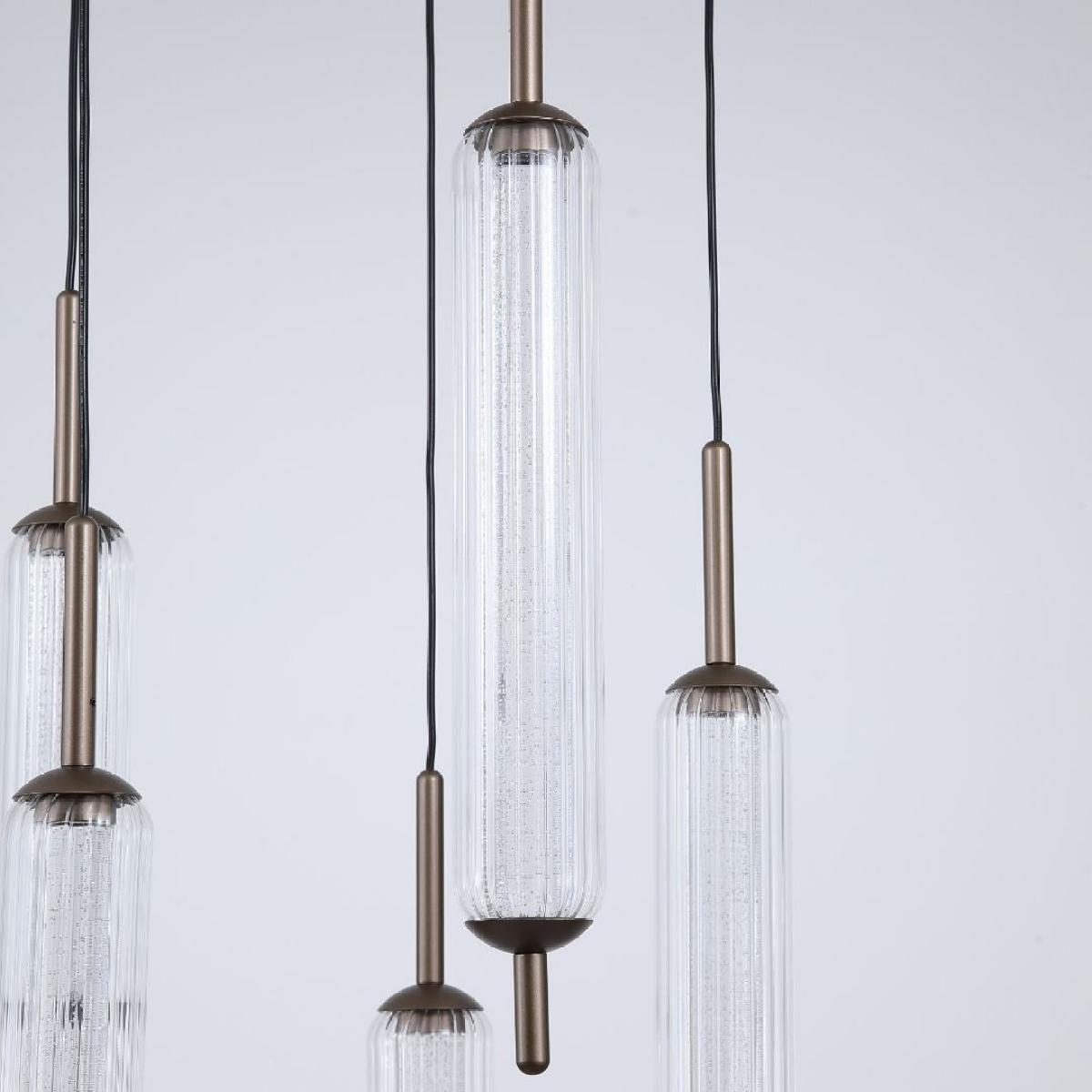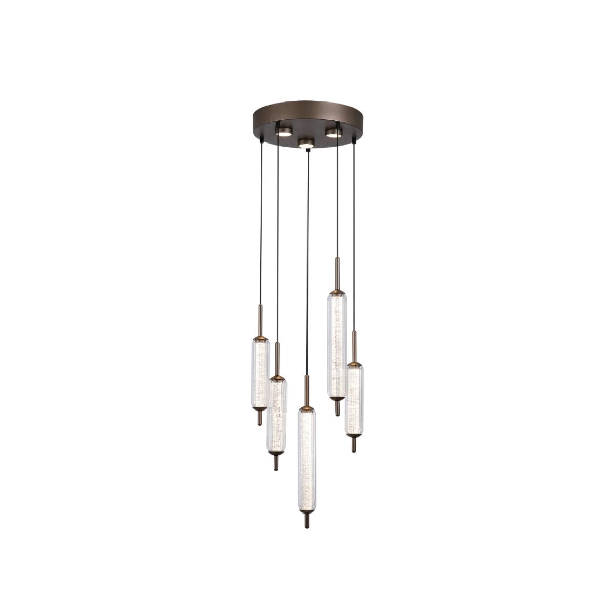 Discover the Cattail LED Pendant – a nature-inspired multi-drop pendant that captures the organic beauty of wetland cattails in contemporary lighting design. This impressive statement piece works beautifully in spaces with high ceilings, stairwells, or as a dramatic centrepiece over dining areas where its sculptural silhouette becomes a conversation starter. The design features five tube glass cylinder shades suspended from a round latte-toned ceiling plate, perfectly mimicking the natural clustering and graceful sway of cattail reeds. The integrated LED system delivers comprehensive warm white lighting that transforms your space's ambience, while three additional GU10 LED spots (bulbs sold separately) positioned in the ceiling plate maximise overall illumination and coverage. Product dimensions: H150-35xW37xL3. 7 cm Integrated LED - Warm white light (3000 Kelvins) 1033 Lumens Dimmable Requires 4x GU10 lightbulbs (sold separately) for the fixture plate