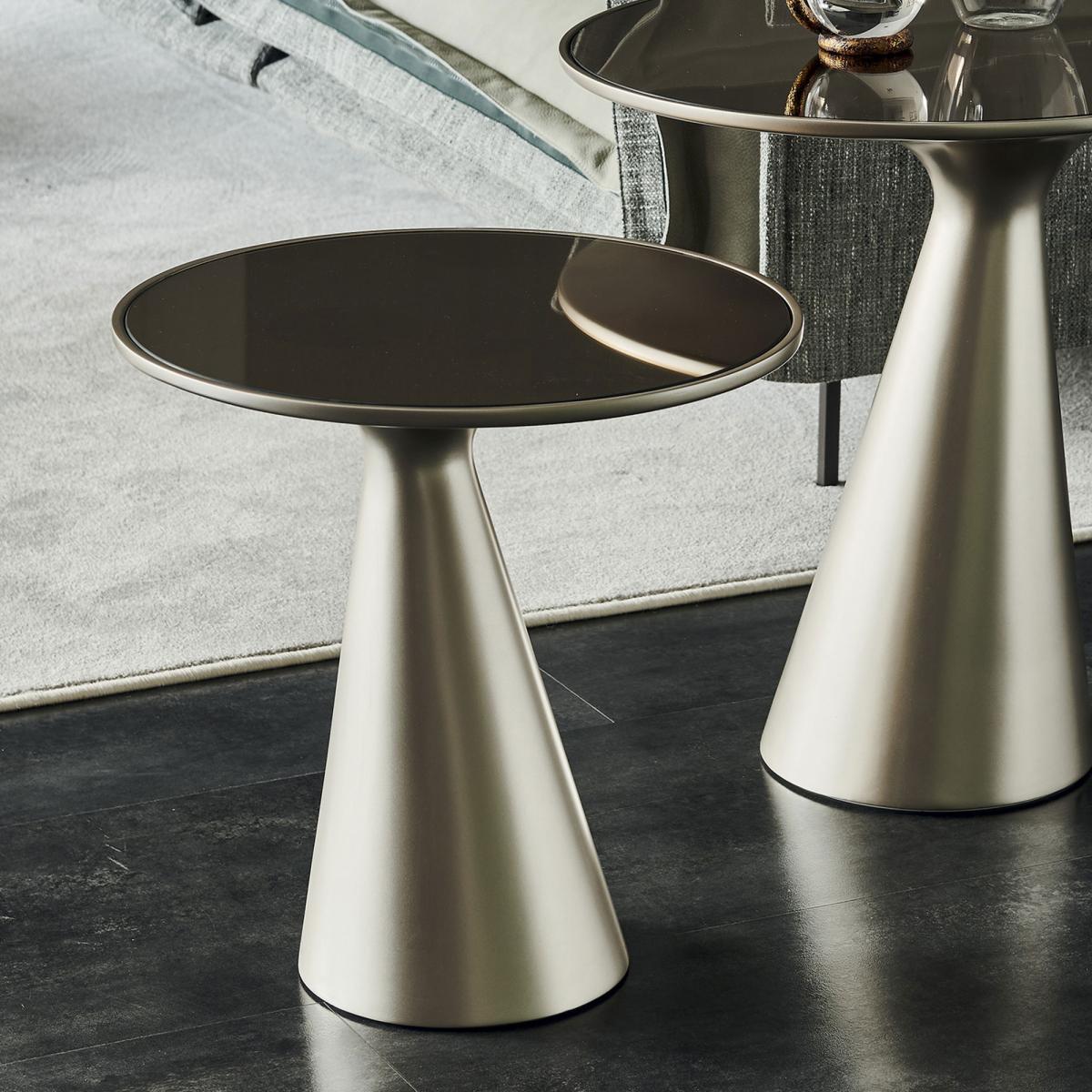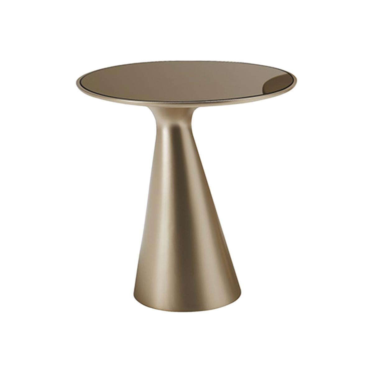 The perfect perch for smaller spaces, the Peyote side table offers ample suave style for any living room, bedroom or hallway. Formed with a conical base, the tabletop gently curves to produce a flat surface made from bronze mirrored glass for a warm sentiment. Easily providing a creative touch, Peyote is sure to stand out.