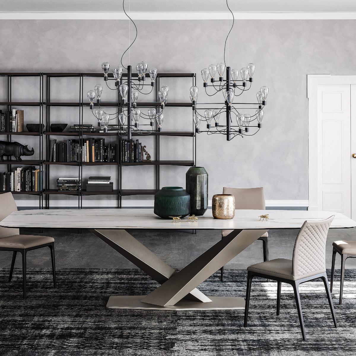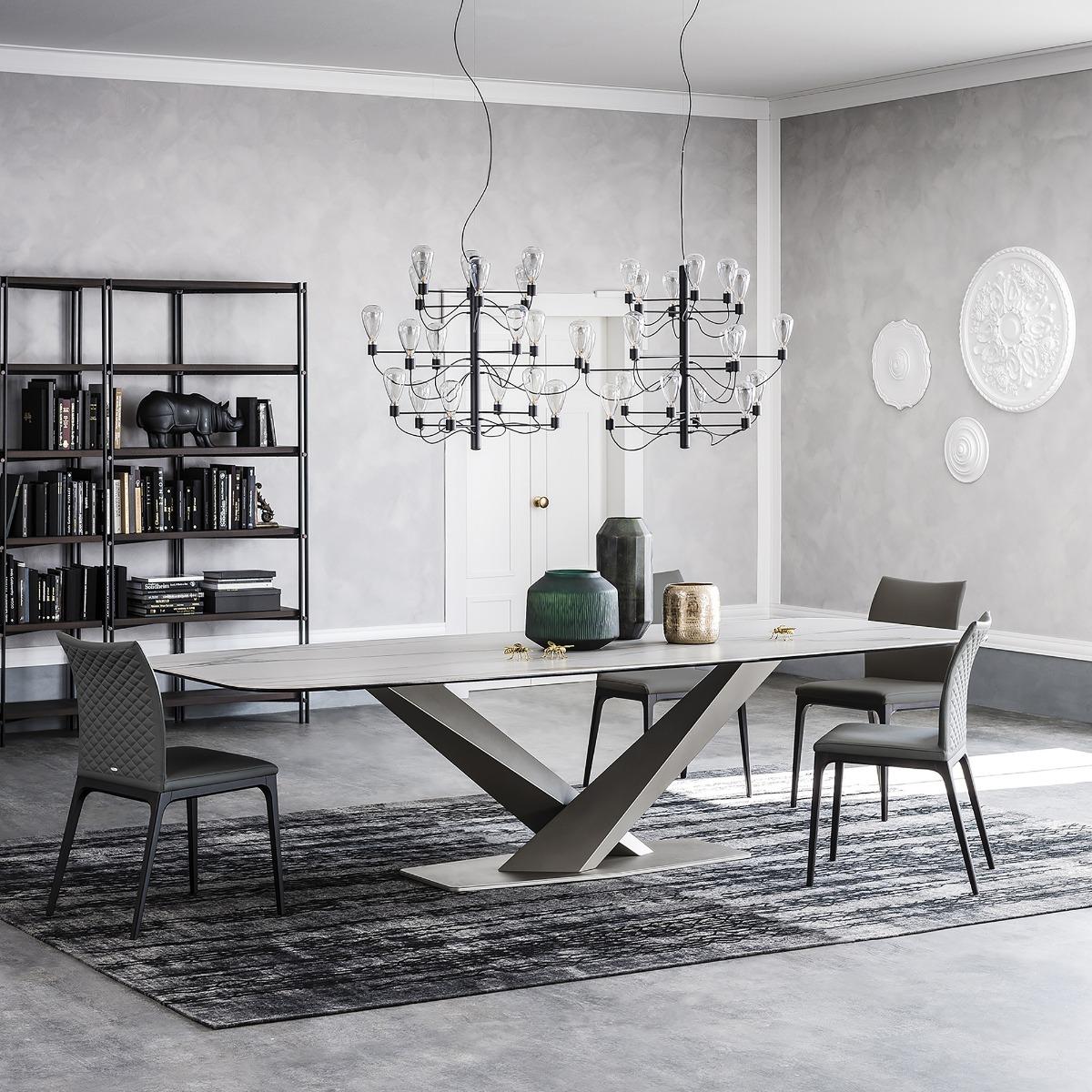 Cattelan Italia Stratos Keramik Dining Table, Titanium and Matt Golden Calacatta Cattelan Italia Stratos Keramik Dining Table, White Ceramic | W300cm | Cattelan Italia