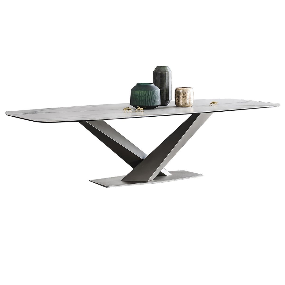 This dining table is a real statement piece, perfect for contemporary and minimalist interiors thanks to its sleek white ceramic finish and striking sculptural base. I love how versatile it is - it can seamlessly fit into both monochrome modern schemes and more eclectic settings with colourful or textured accessories. When styling, consider pairing it with understated chairs to keep the focus on the table’s clean lines, or go for bold contrast with upholstered chairs in deep hues. Because of its large size, it works well in open-plan spaces or bigger dining rooms, making it ideal for family gatherings or entertaining. To complete the look, keep accessories minimal - a few low vases or a centrepiece will add visual interest without cluttering the table.